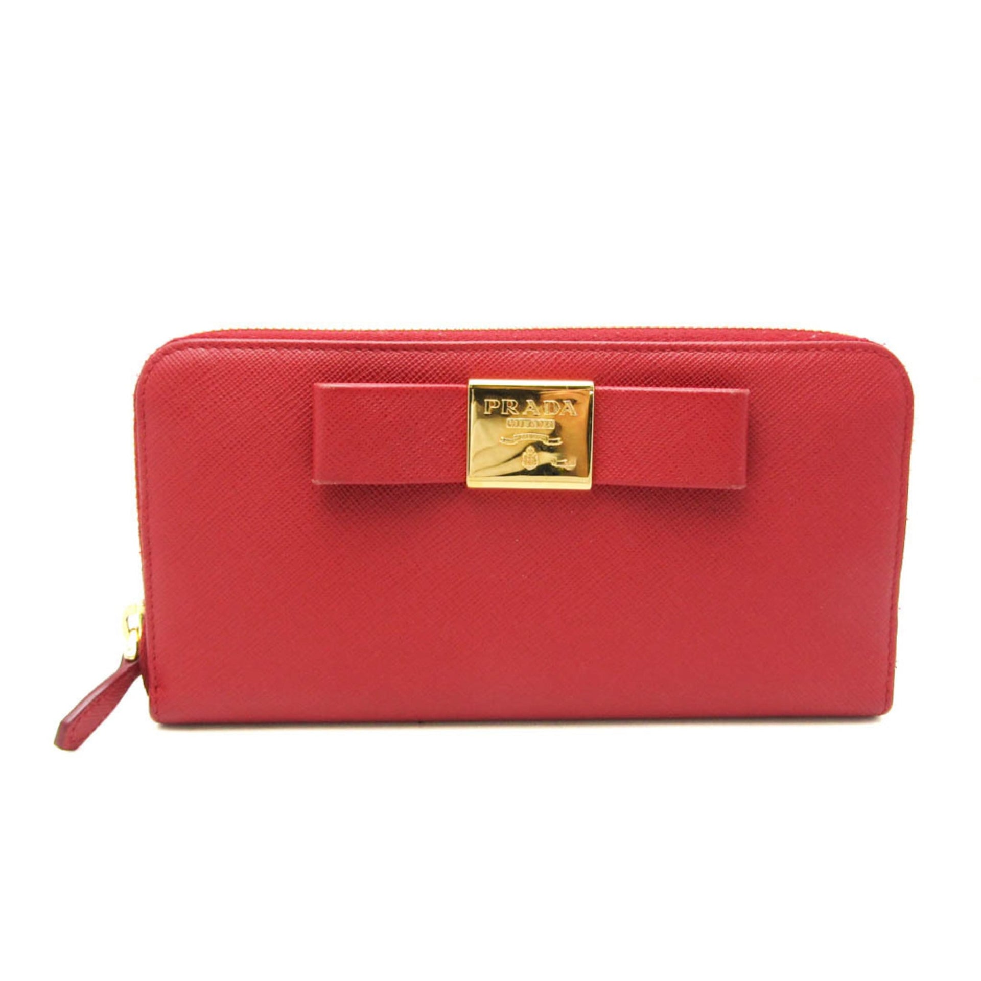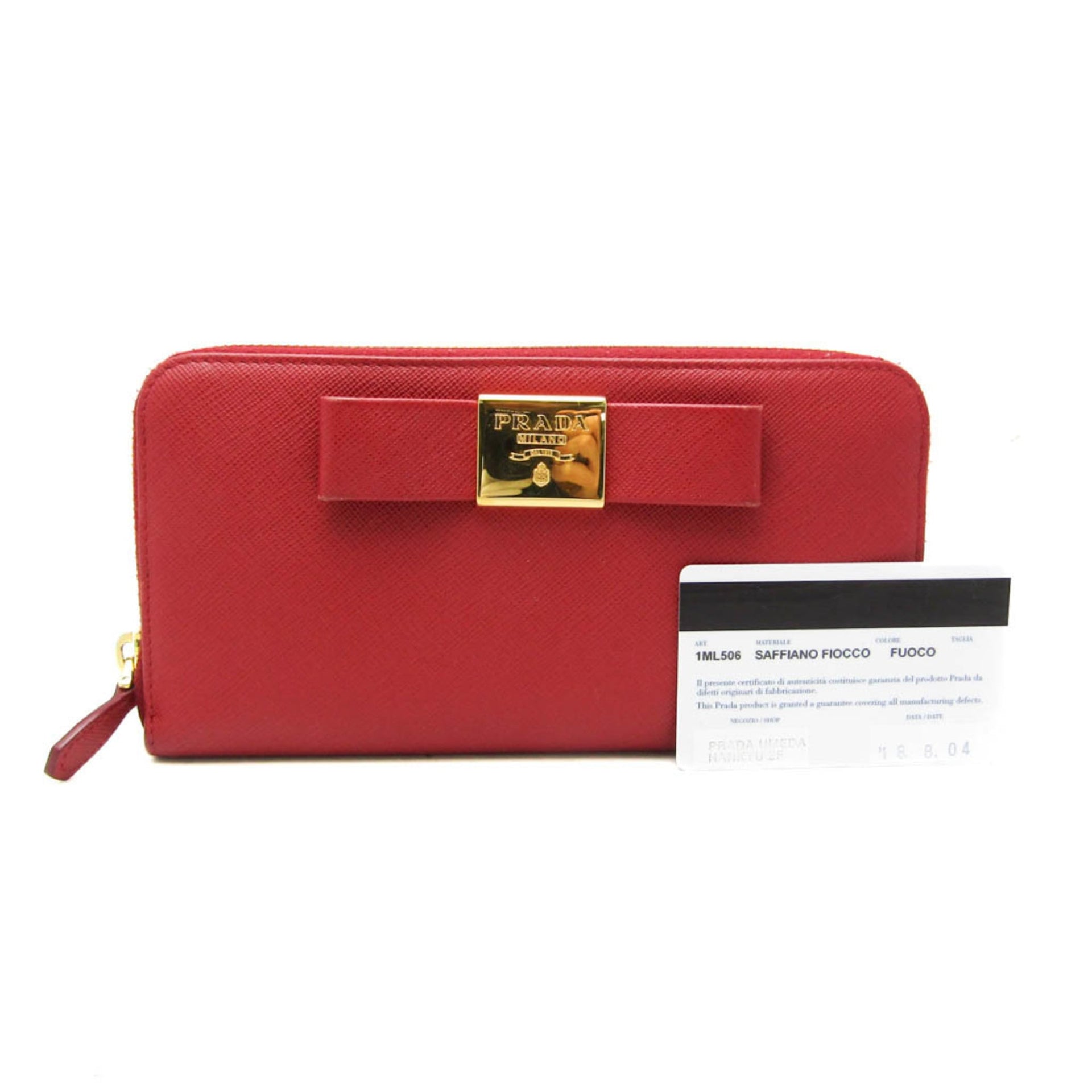 Prada Saffiano SAFFIANO FIOCCO 1ML506 Women\'s Leather Long Wallet (bi-fold) Red Color