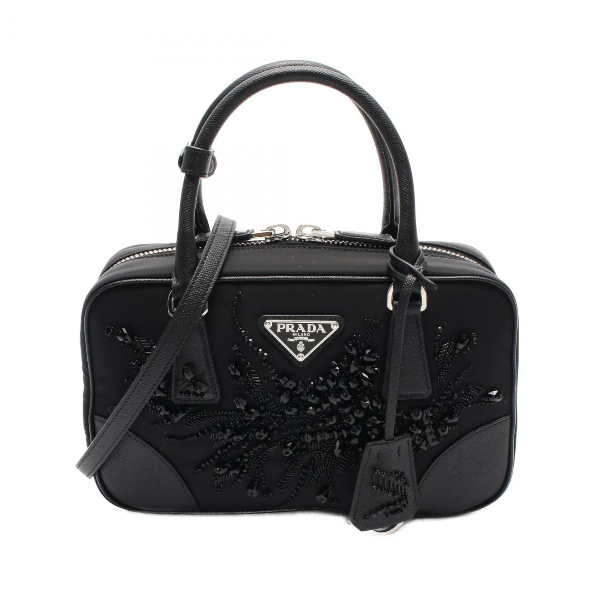 PRADA TESSUTO+SAFFIANO handbag in nylon and saffiano leather for women, black, 1BB1212C4QF0632