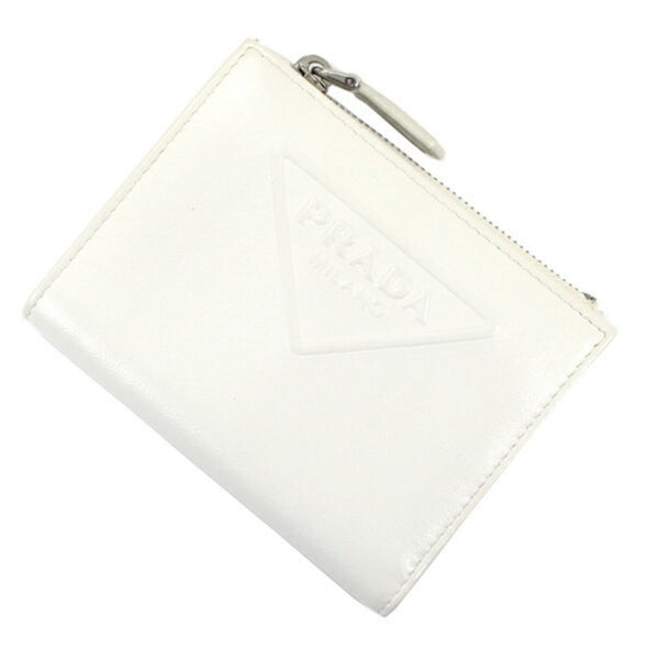 Prada Wallet Bi-fold Coin Purse Wallet/Coin Case Compact White Leather Men\'s Women\'s PRADA 1ML050 Business Card Holder/Card Small