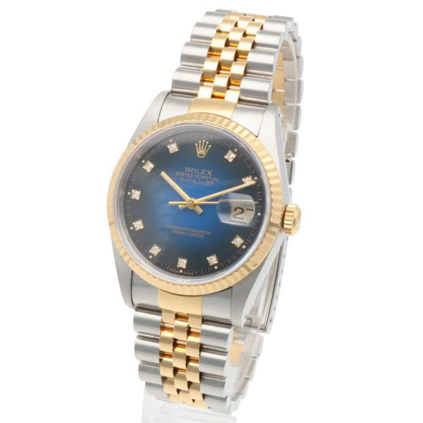 Rolex Datejust Oyster Perpetual Watch, Stainless Steel, 16233, Automatic, Overhauled and Refinished, S-Serial, Men\'s, 10 Diamonds, Blue Gradient