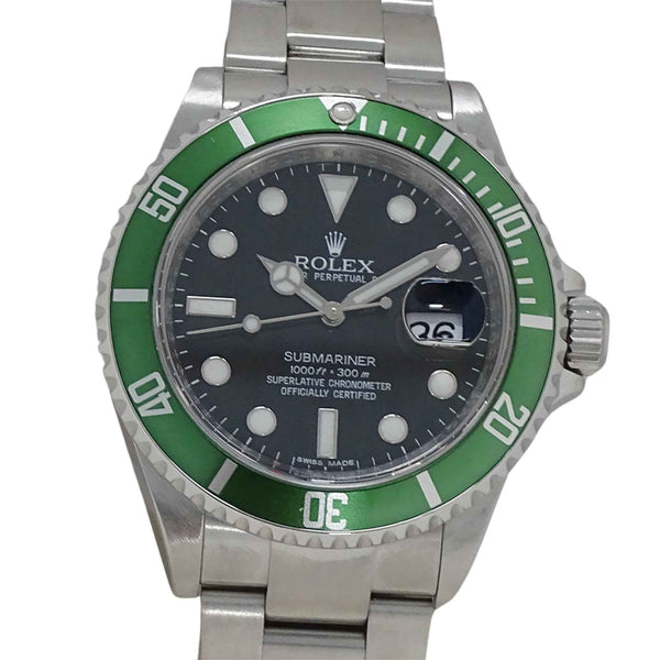 Rolex Submariner Date 16610LV G-Serial Men\'s Automatic Watch with Stainless Steel Finish, Green Roulette, Polished