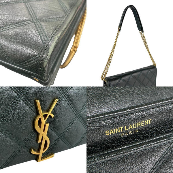 Saint Laurent shoulder bag in dark green and gold leather, women\'s, 629246 z6772