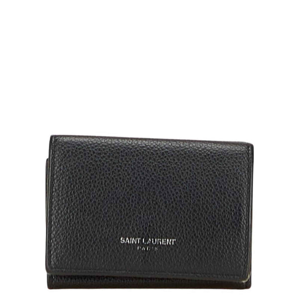 Saint Laurent Tiny Wallet, Compact Tri-fold 459784, Black Leather, Women\'s, SAINT LAURENT
