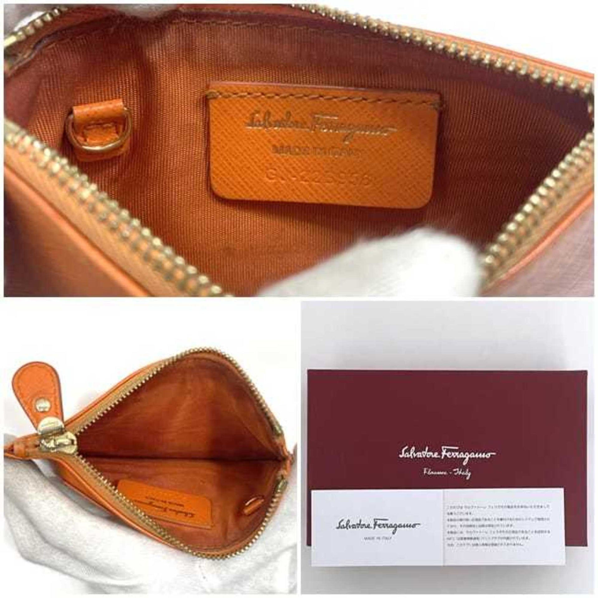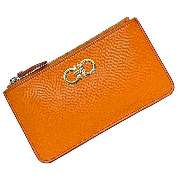 Salvatore Ferragamo Coin Case ec-23091 Orange Gancini Leather GJ-22B956 Women\'s