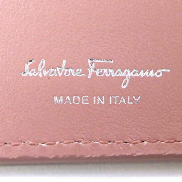 Salvatore Ferragamo Double Gancini 22 Bifold Wallet D665 Pink Leather Compact Mini for Women