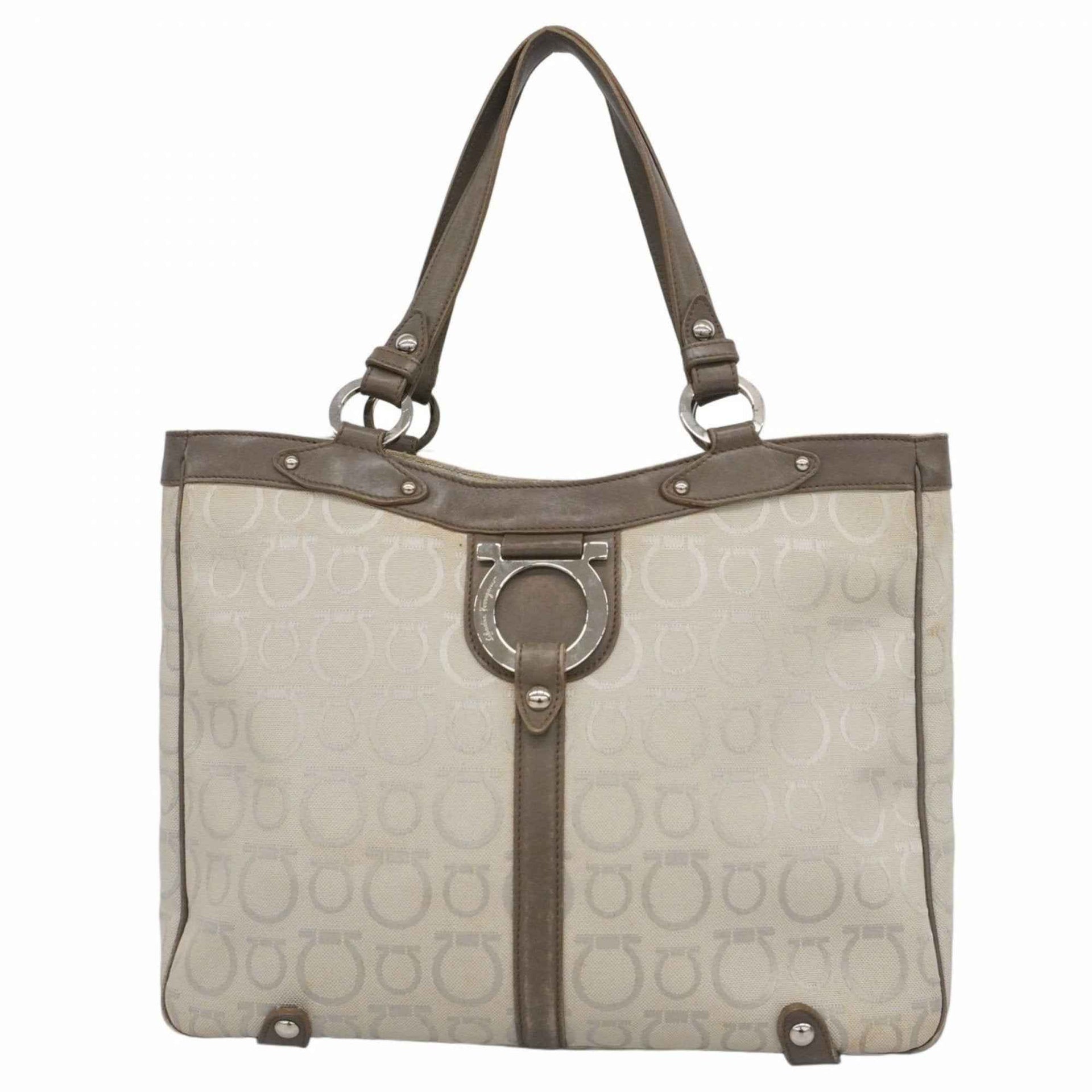 Salvatore Ferragamo Gancini canvas tote bag, grey, for women