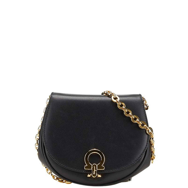 Salvatore Ferragamo Gancini Crossbody Chain Shoulder Bag AQ214204 Black Leather Women\'s