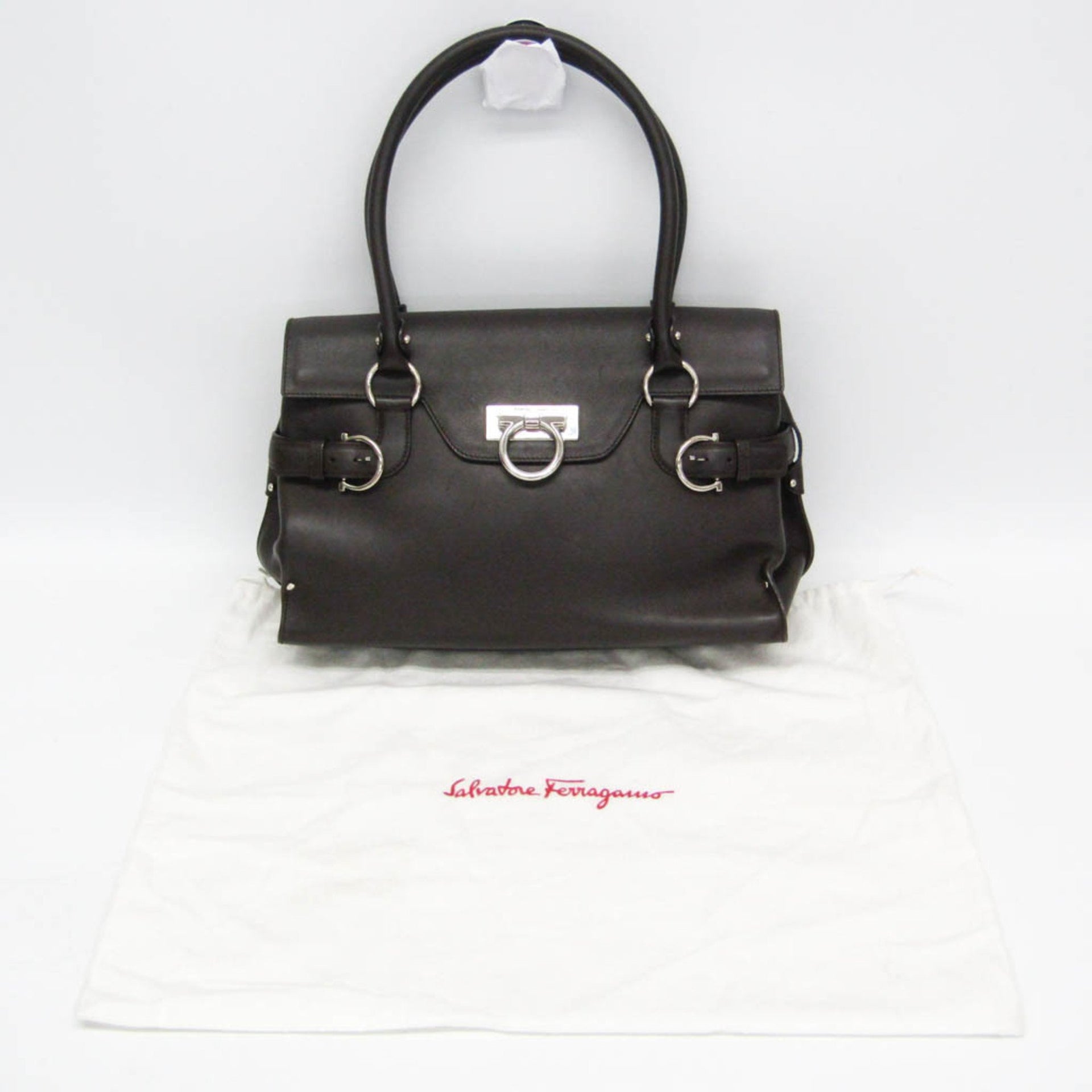 Salvatore Ferragamo Gancini DY-21 4402 Women\'s Leather Handbag Dark Brown