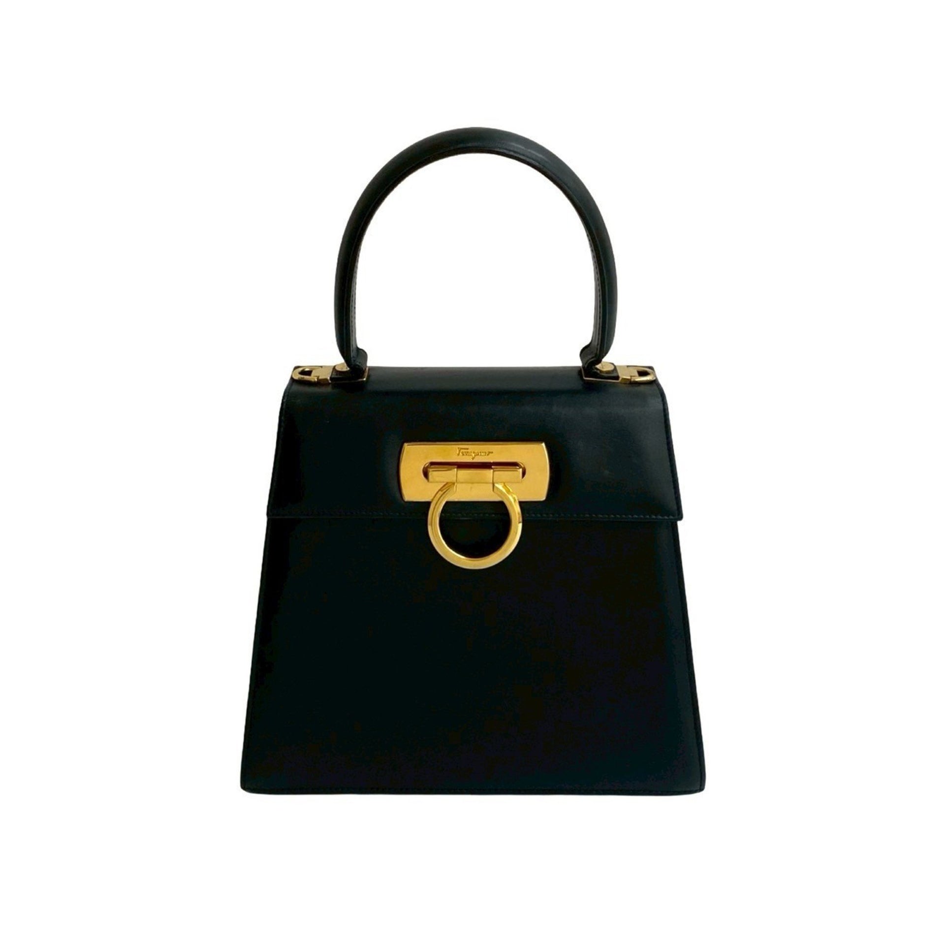 Salvatore Ferragamo Gancini hardware leather handbag tote bag in dark navy, 30715
