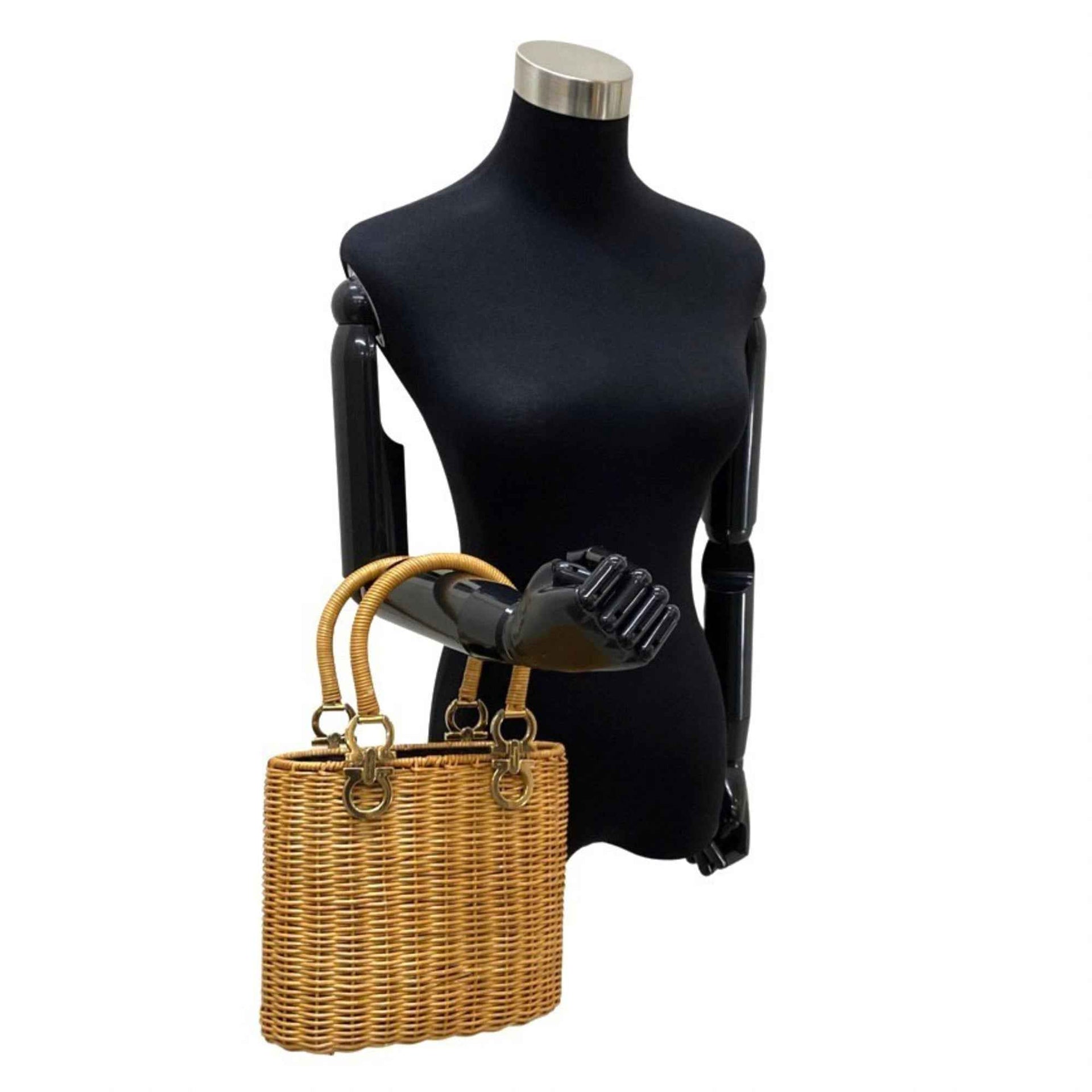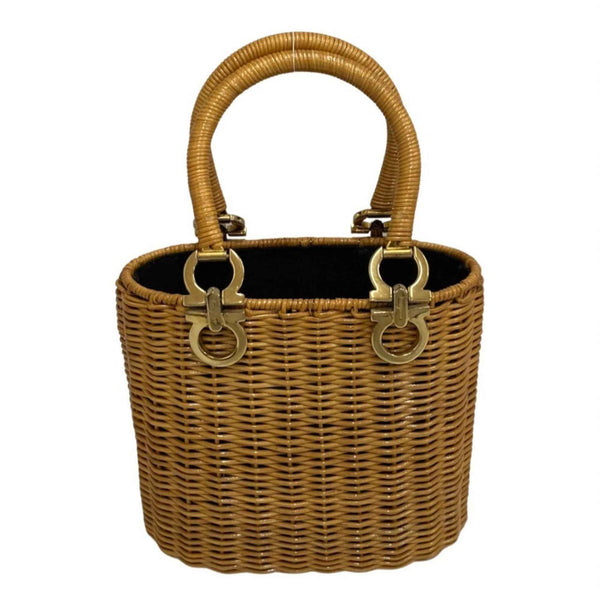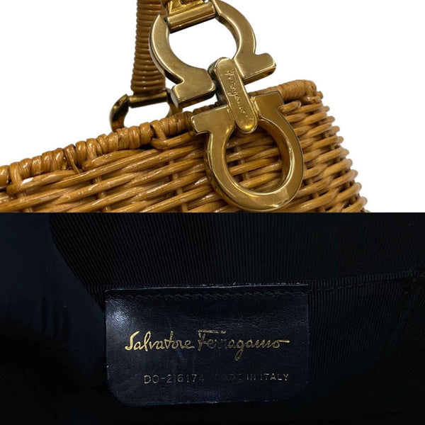 Salvatore Ferragamo Gancini Hardware Rattan Handbag Mini Tote Bag Beige