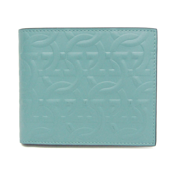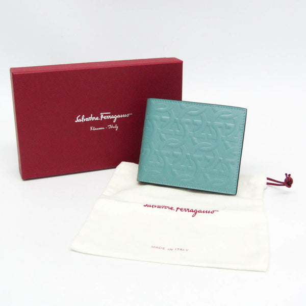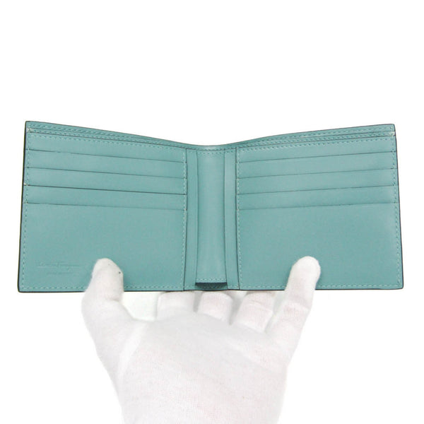 Salvatore Ferragamo Gancini JL-66 0896 Men\'s Leather Bill Wallet (bi-fold) Blue Green