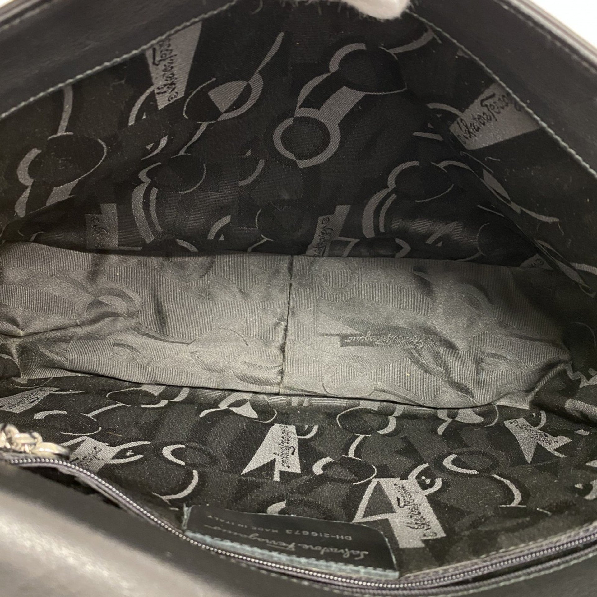 Salvatore Ferragamo Gancini Leather Shoulder Bag, Black, Women\'s