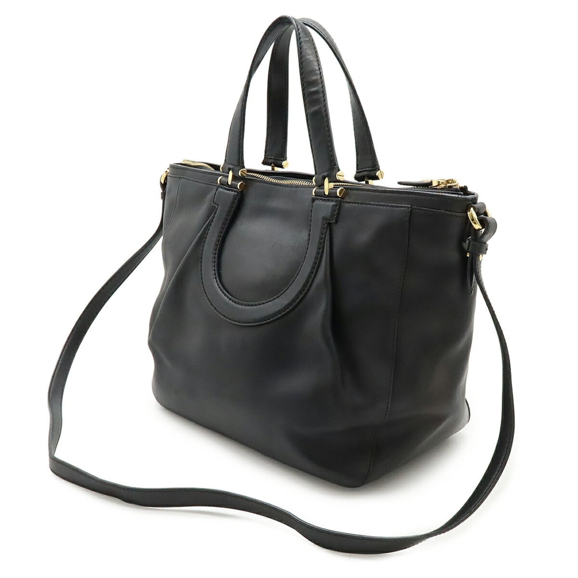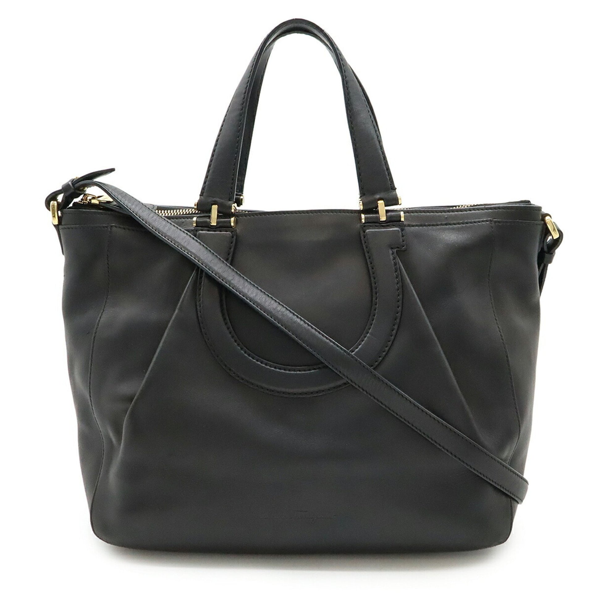 Salvatore Ferragamo Gancini Tote Bag, Shoulder Black Leather, EZ-21 F702