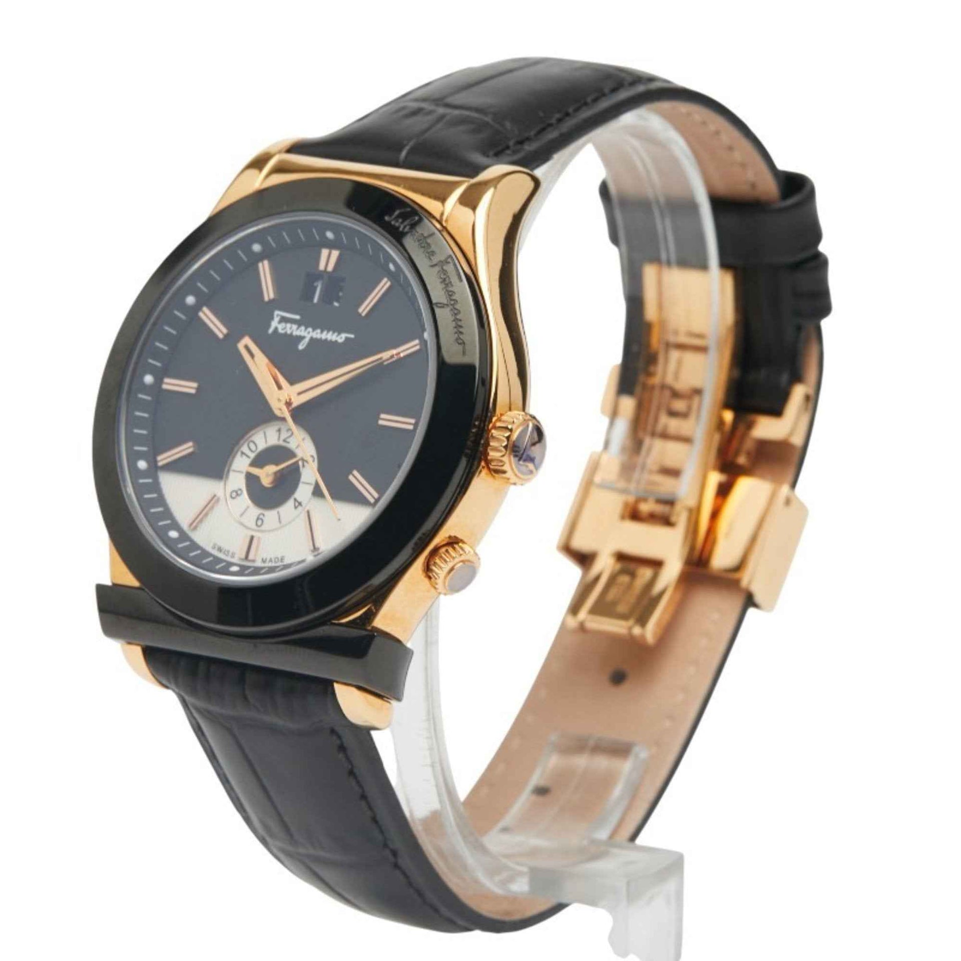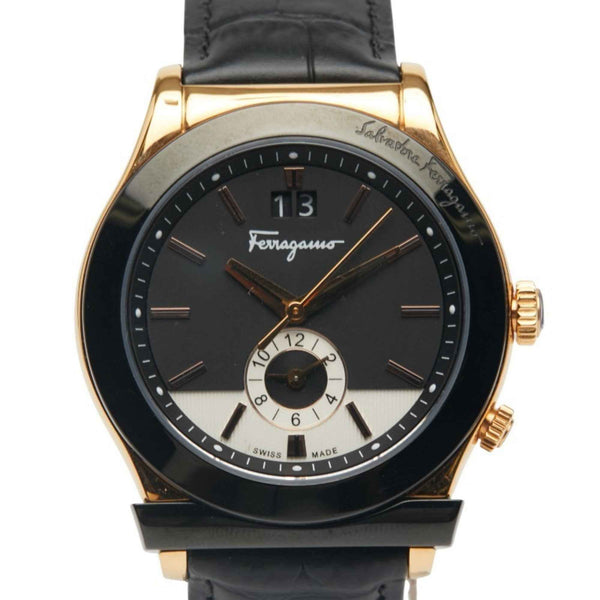 Salvatore Ferragamo Men\'s Watch FFO020017, Quartz Movement, Black Dial, Stainless Steel, Leather