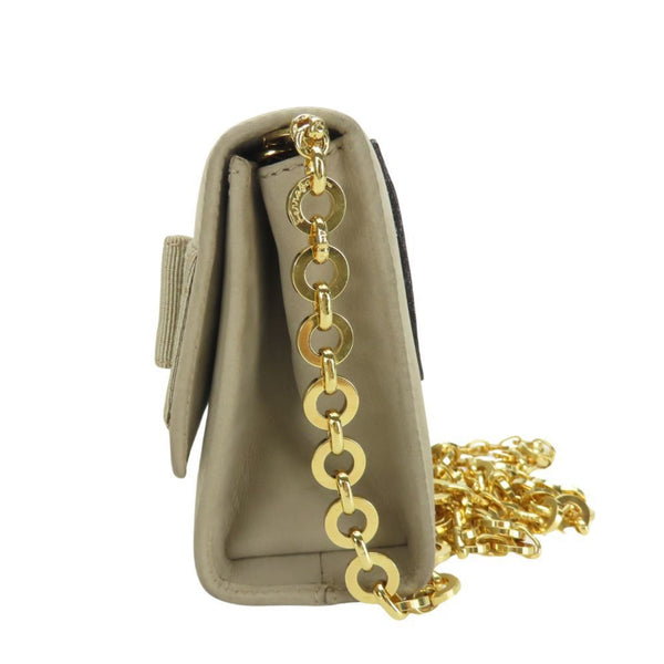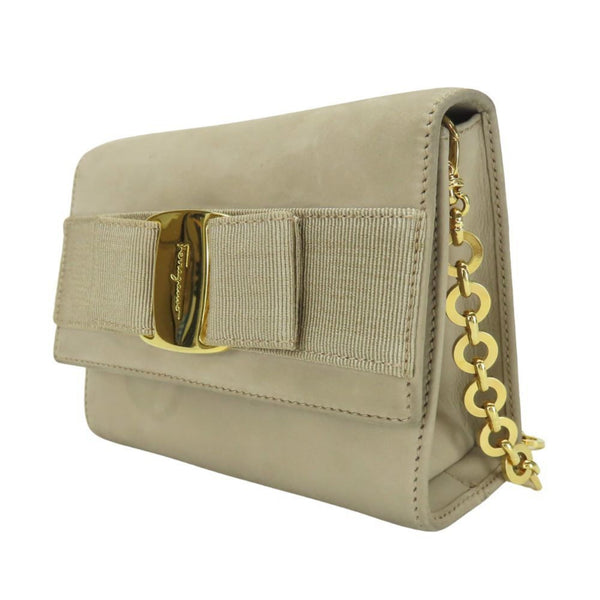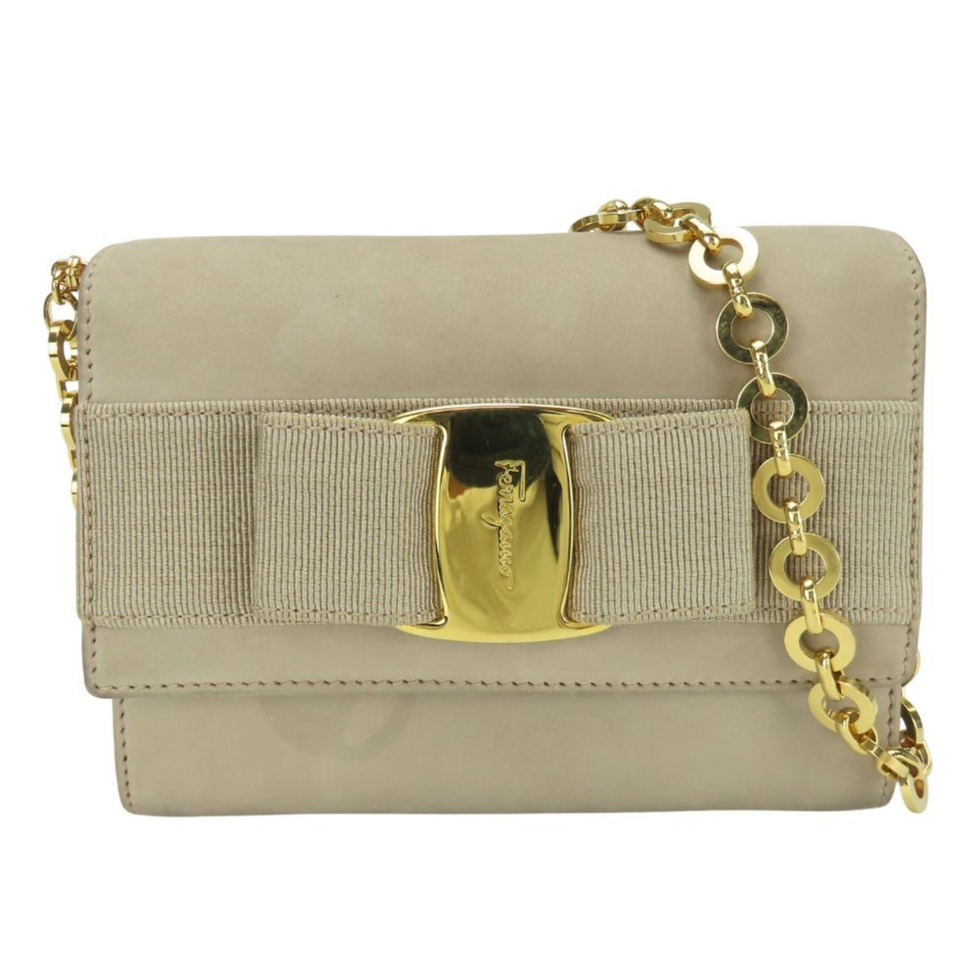Salvatore Ferragamo Shoulder Bag AQ213202 Vara Ribbon Chain Mini Pochette Suede Greige Waist Pouch Women\'s