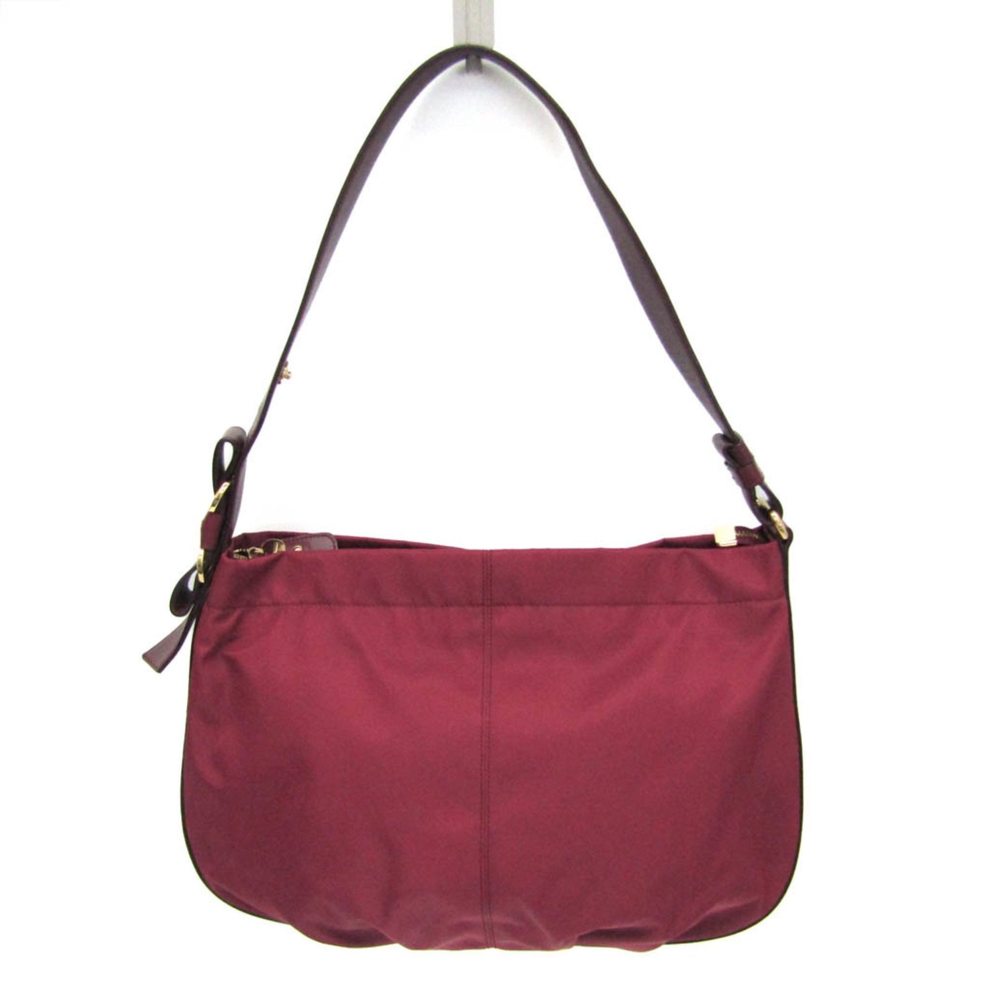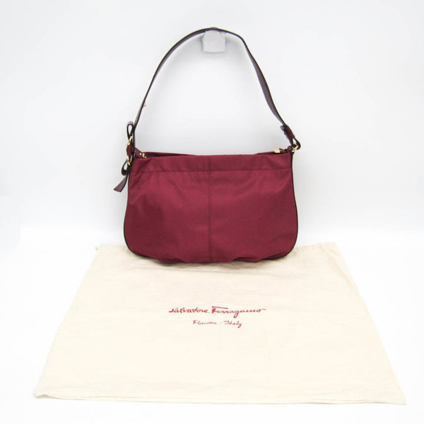 Salvatore Ferragamo Vara AU-21 D337 Women\'s Nylon,Leather Shoulder Bag Bordeaux