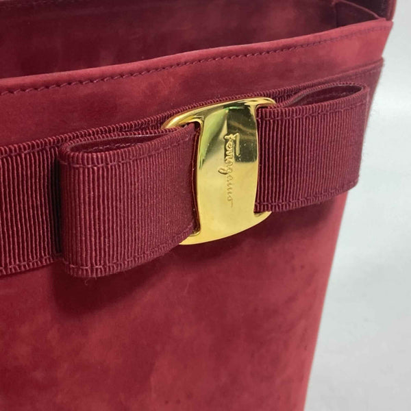 Salvatore Ferragamo Vara Ribbon Bucket Shoulder Bag, Suede Handbag, Women\'s, Red
