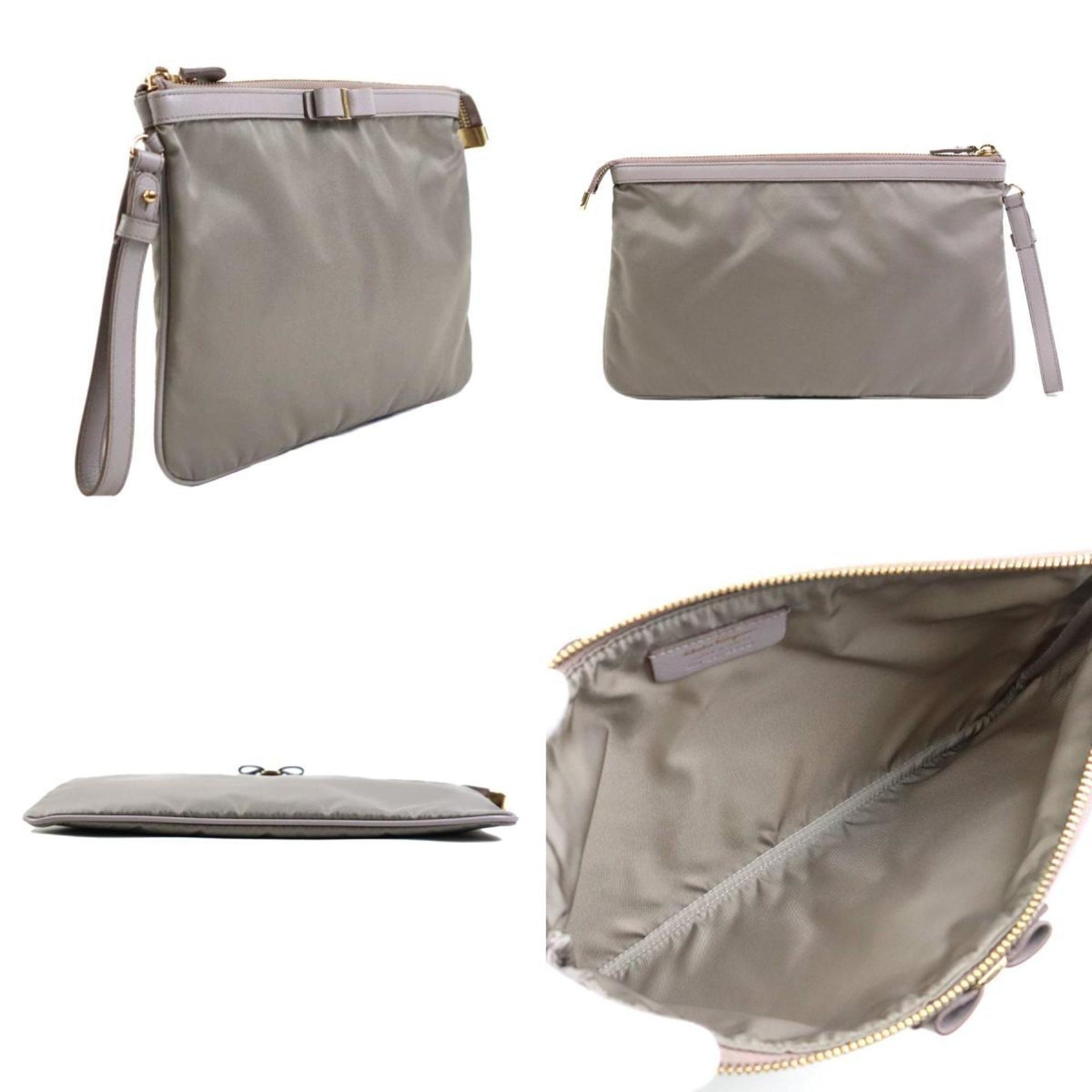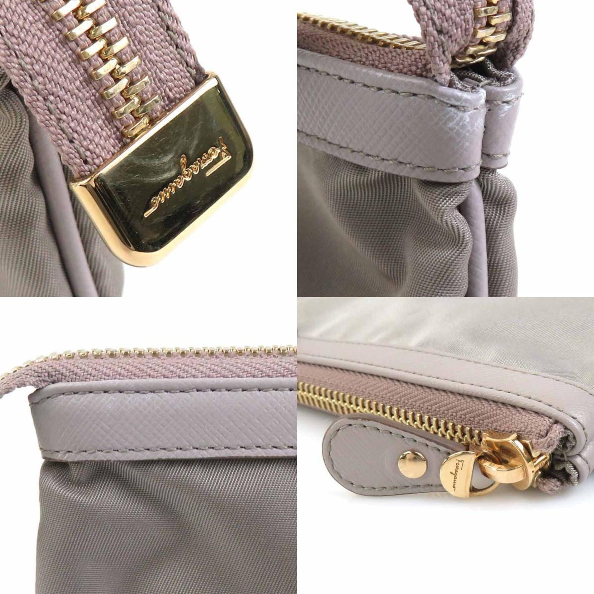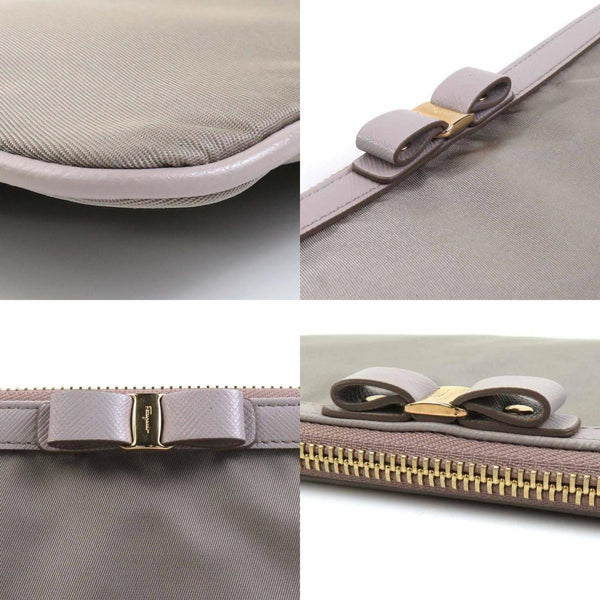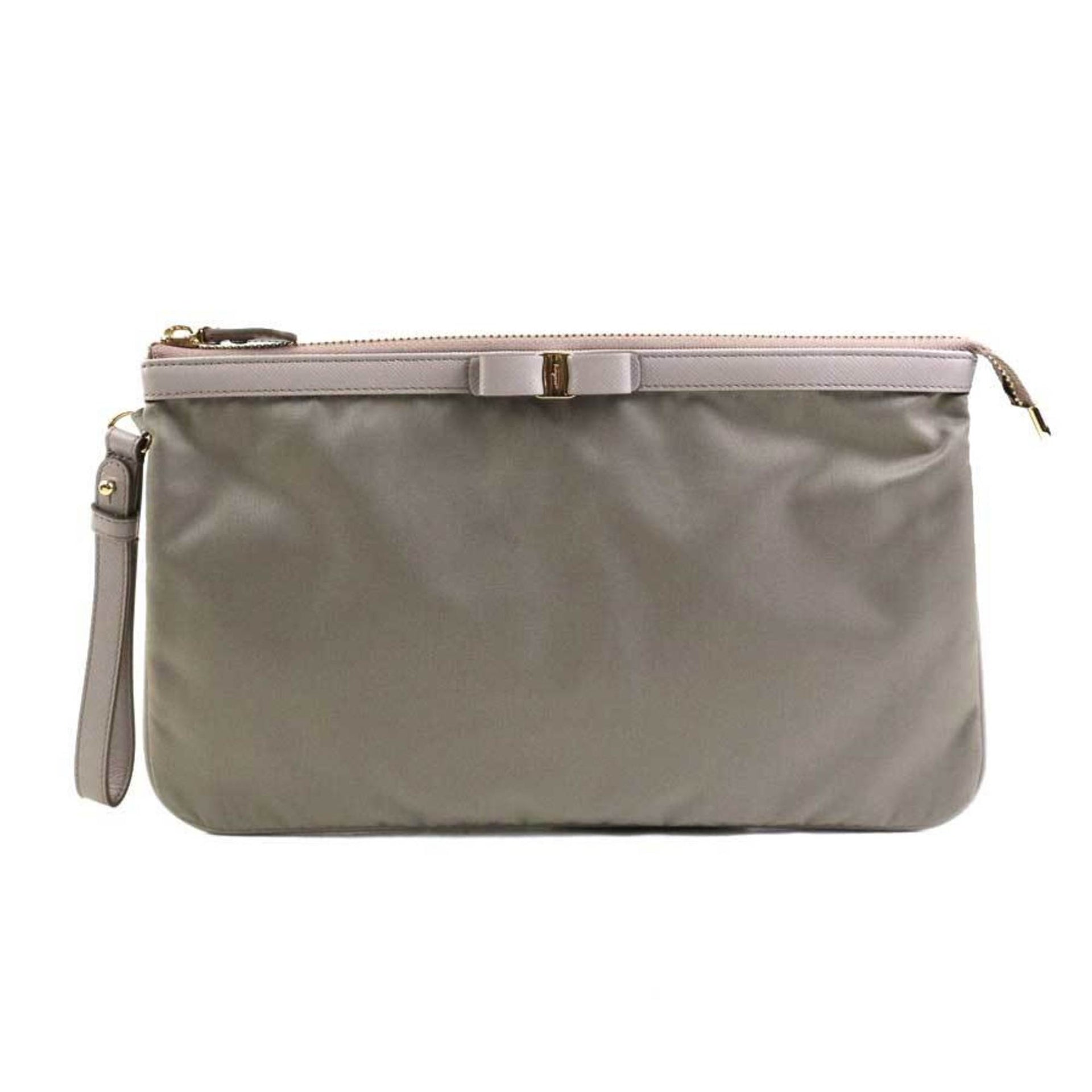 Salvatore Ferragamo Vara Ribbon Clutch Bag in Nylon and Leather, Gray, Women\'s, r10859a