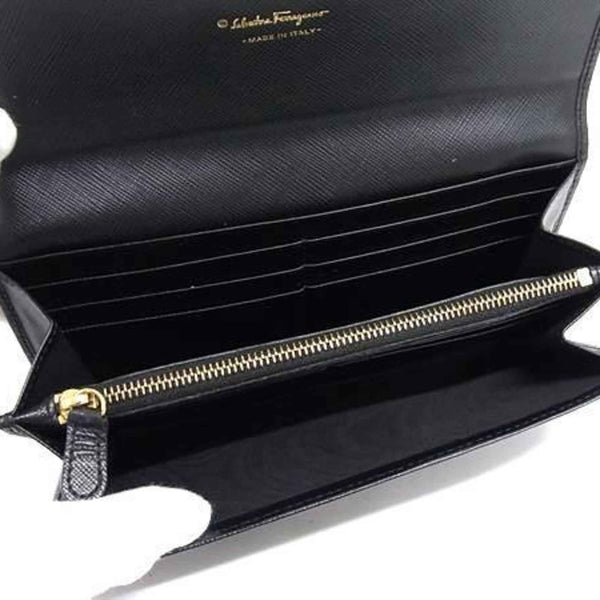 Salvatore Ferragamo Vara Ribbon Flap Wallet, Size 22, C127, Black Leather, Women\'s