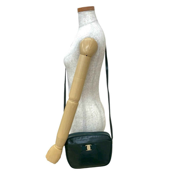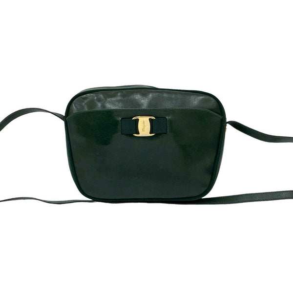 Salvatore Ferragamo Vara Ribbon Hardware Calf Leather Shoulder Bag/Pochette Green 11018