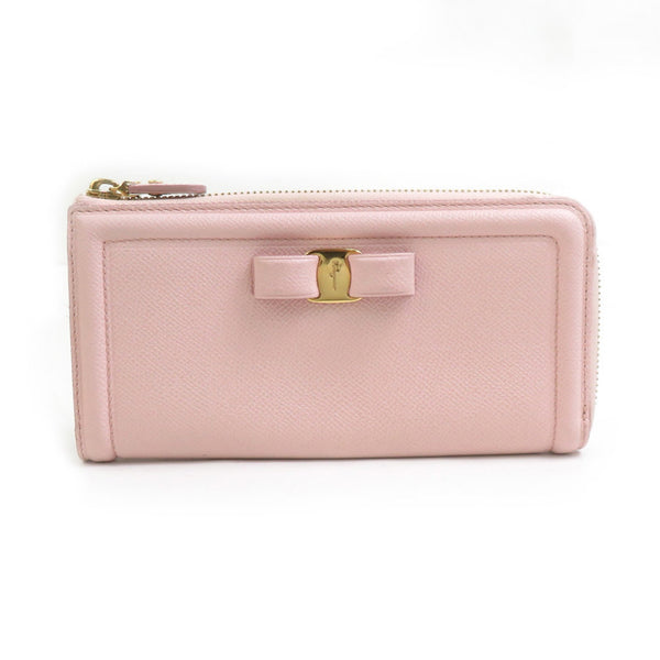 Salvatore Ferragamo Vara Ribbon Leather Round Long Wallet, Pink, Women\'s, H31434a