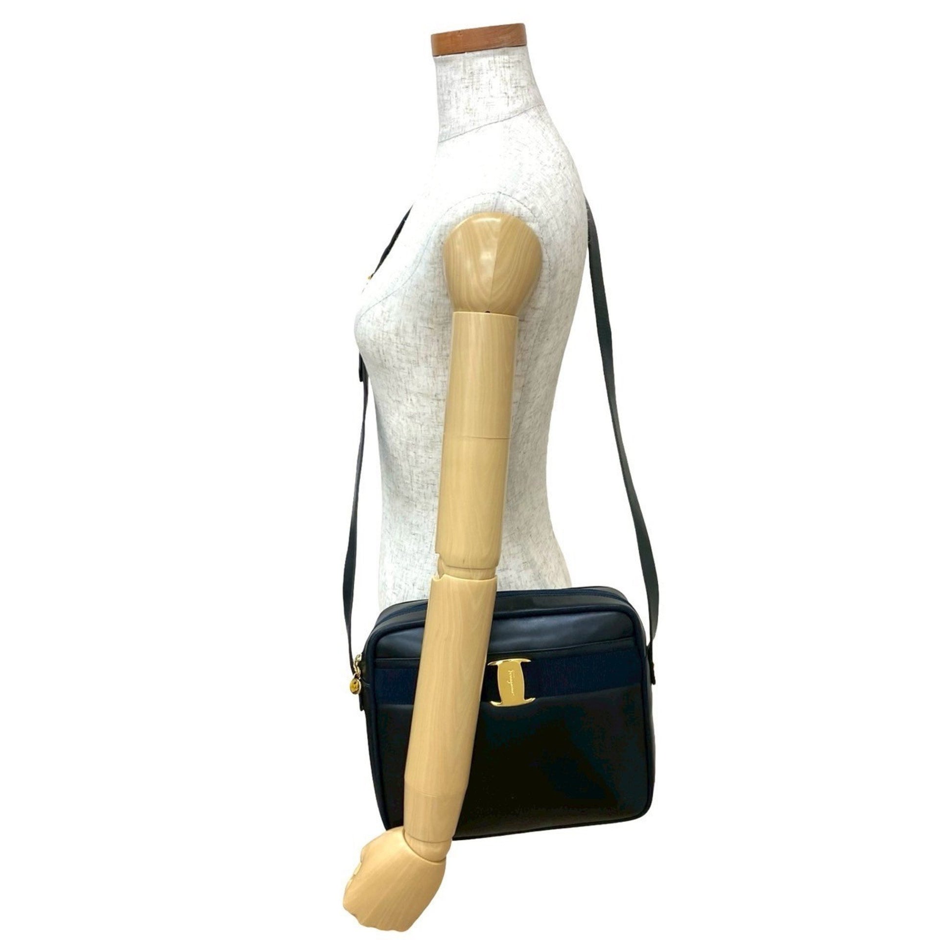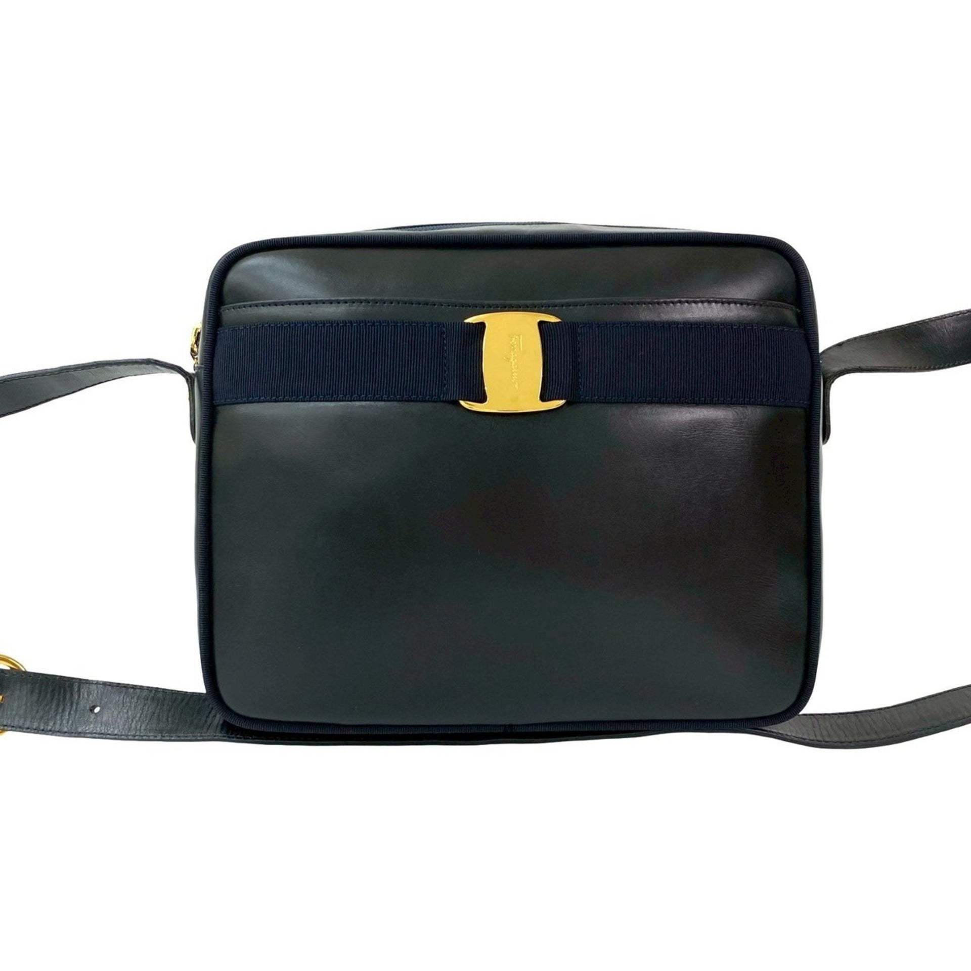 Salvatore Ferragamo Vintage Vara Leather Shoulder Bag with Hardware, Navy Blue, 95502