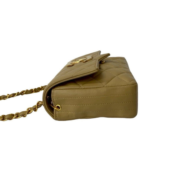 Seal No. 0 CHANEL Vintage Matelasse Coco Mark Lambskin Chain Shoulder Bag Beige -1136