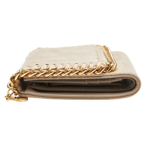 Stella McCartney Falabella Tri-fold Wallet in Beige and Gold Suede Leather for Women
