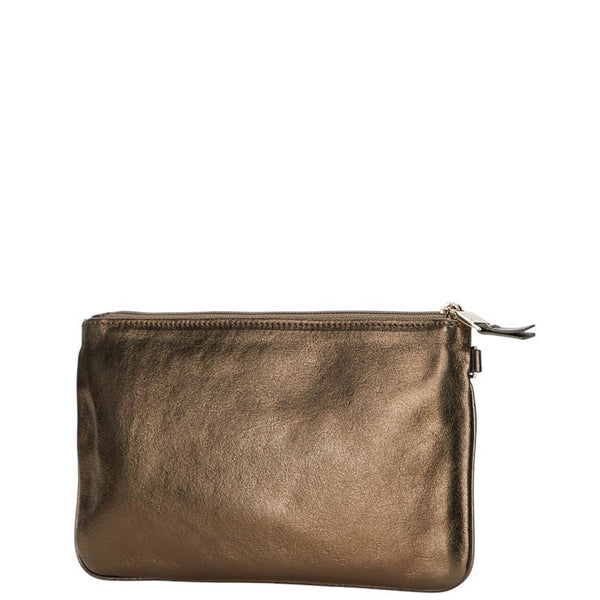 Tiffany & Co. logo plaque pouch in bronze leather for women.