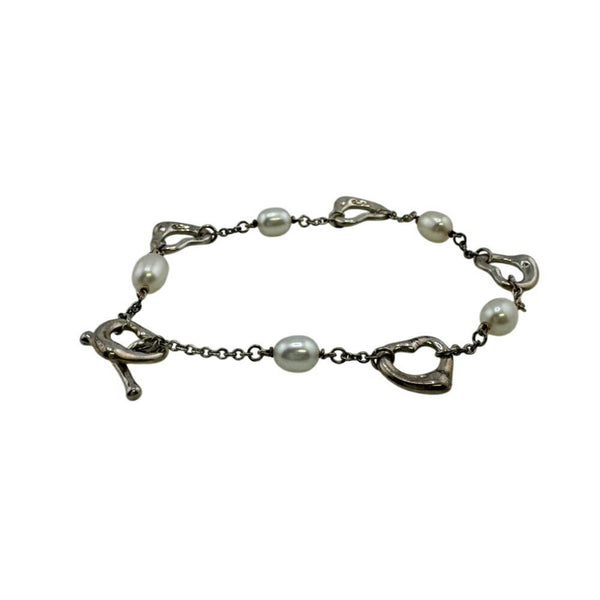 TIFFANY & Co. Tiffany Heart 5 Pearl Bracelet and Ankle Bangle in Silver
