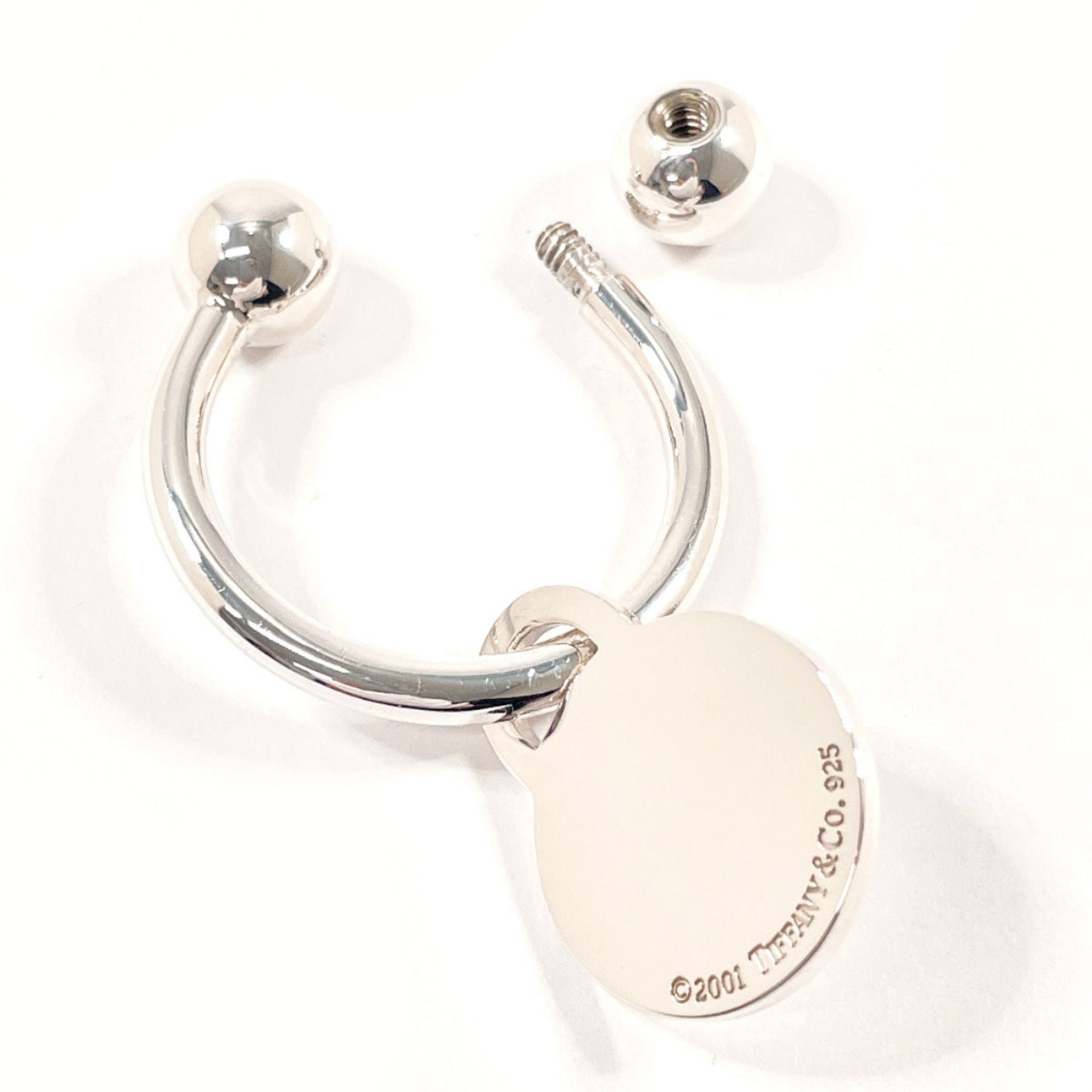 TIFFANY & Co. Tiffany Round Tag Key Ring Keychain, 925 Sterling Silver, Unisex