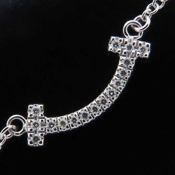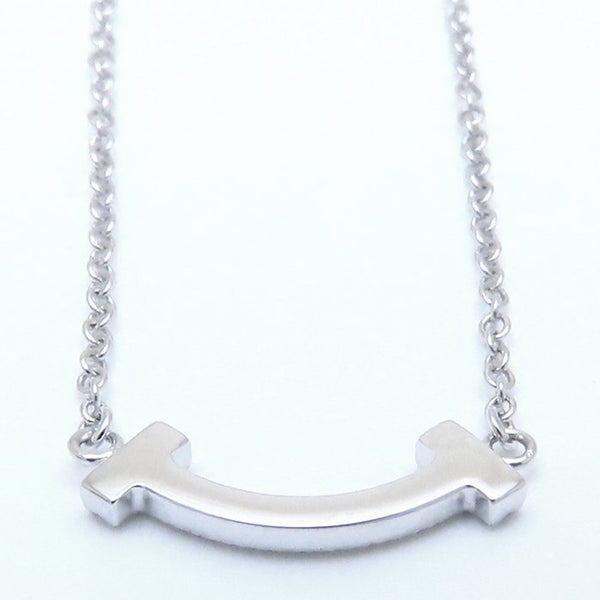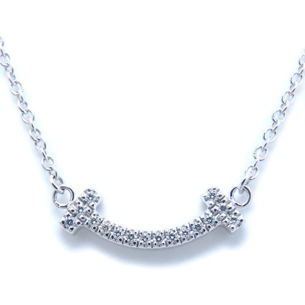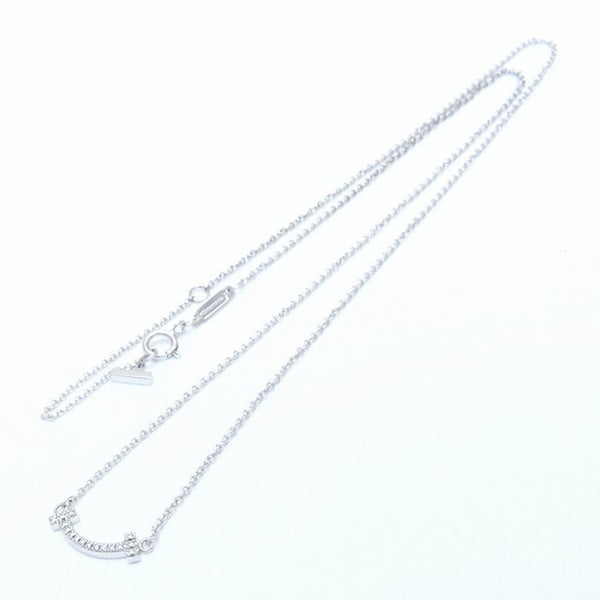 TIFFANY & Co. Tiffany T Smile Necklace, Mini Diamond, 18K White Gold, Women\'s, 294323