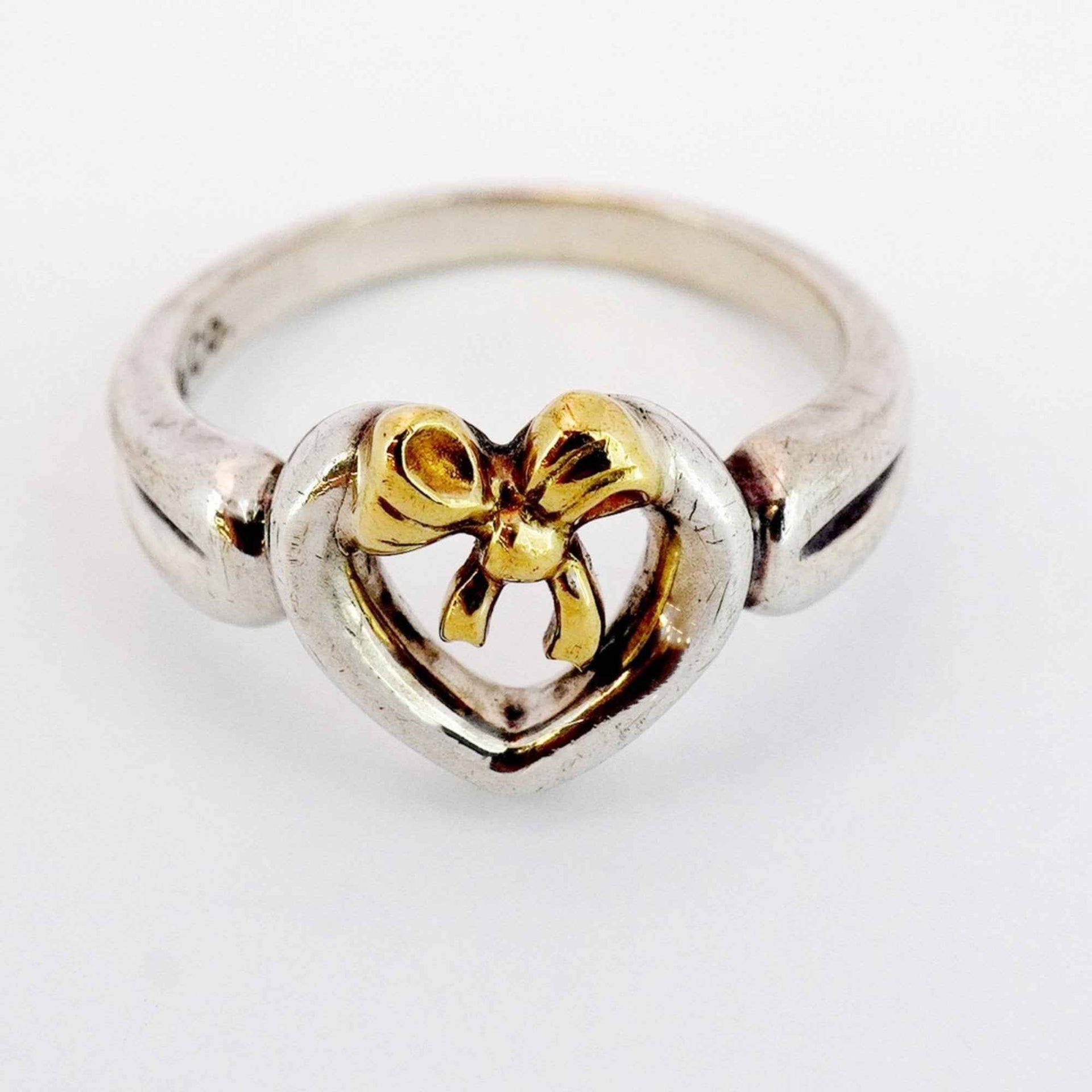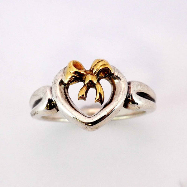 Tiffany Heart Ribbon Ring, 18K Yellow Gold and 925 Sterling Silver, Size 11.5, Women\'s