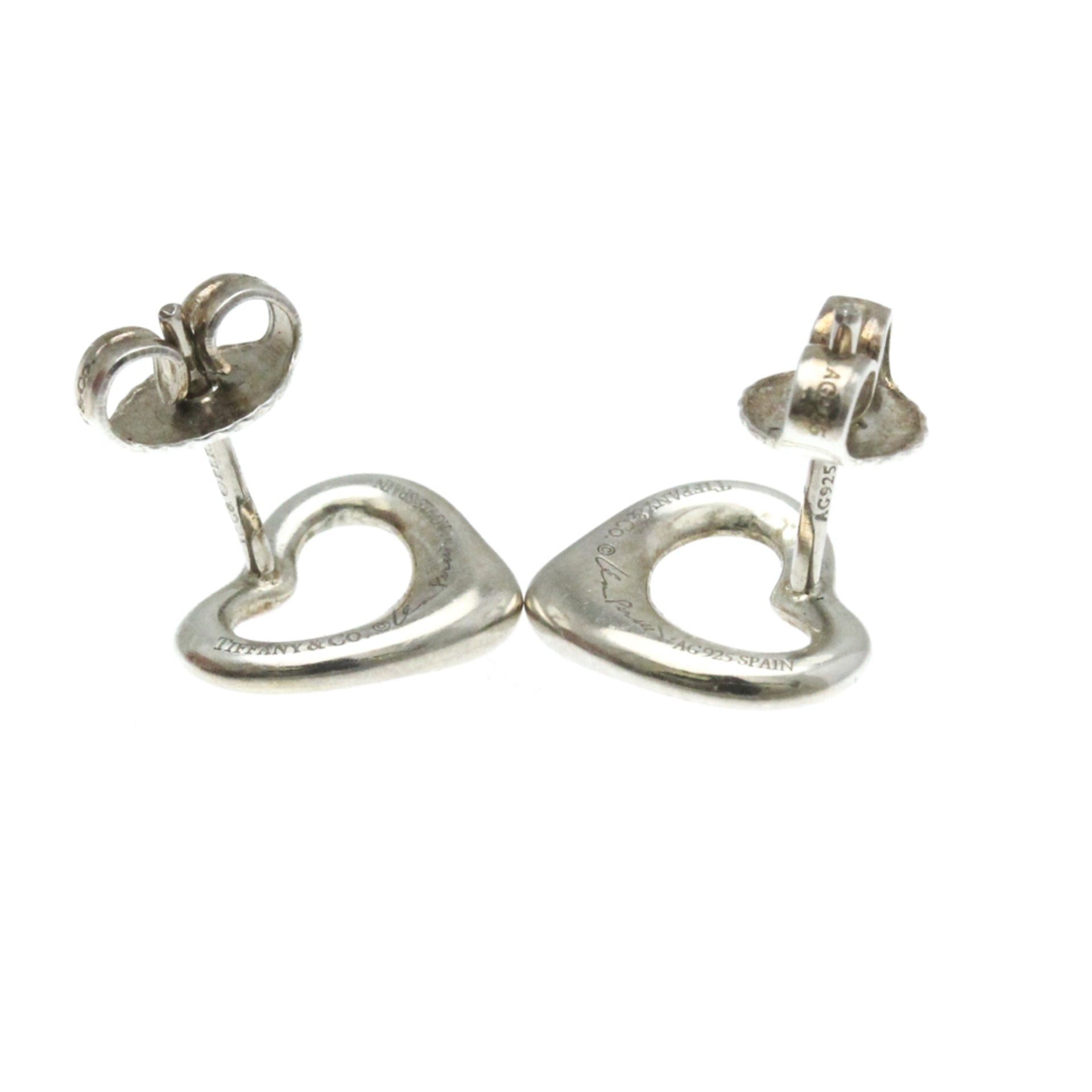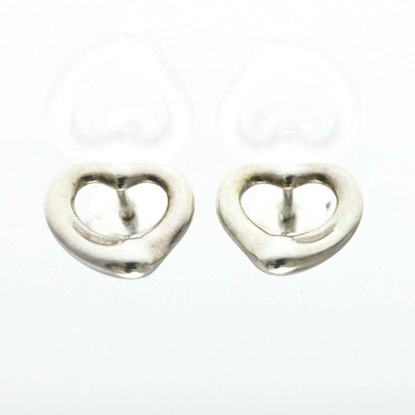 Tiffany Open Heart No Stone Silver 925 Stud Earrings Silver