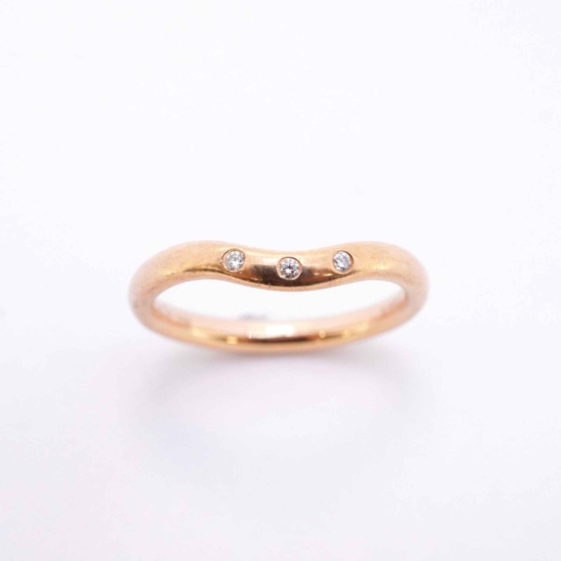 Tiffany ring, curved band, 3PD, 18KPG pink gold, diamond, size 6.5, women\'s