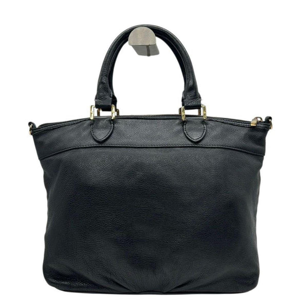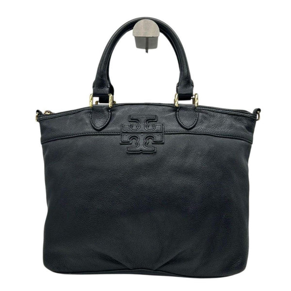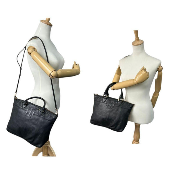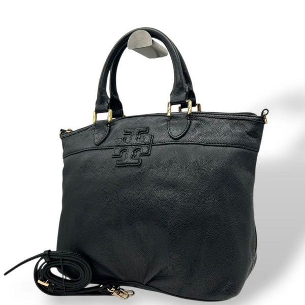 Tory Burch 2-way leather handbag, shoulder bag, tote black, gold hardware, logo plate.