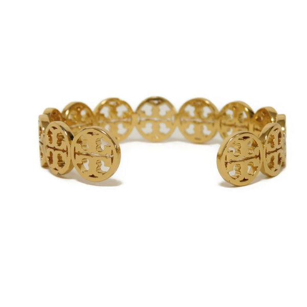 Tory Burch Bangle Bracelet Cuff GP Brass Double T Monogram Plated Gold 37317 Women\'s