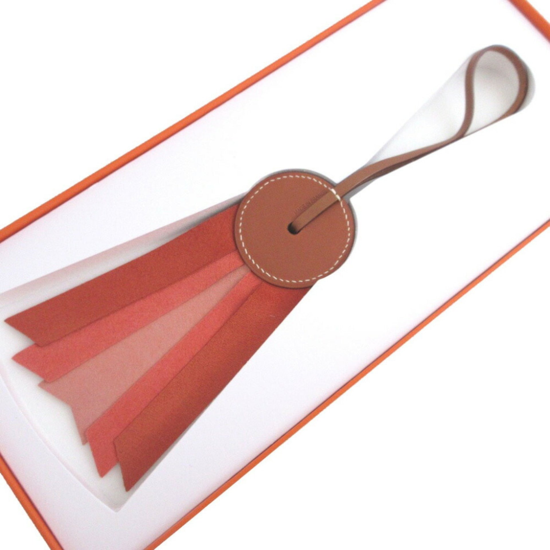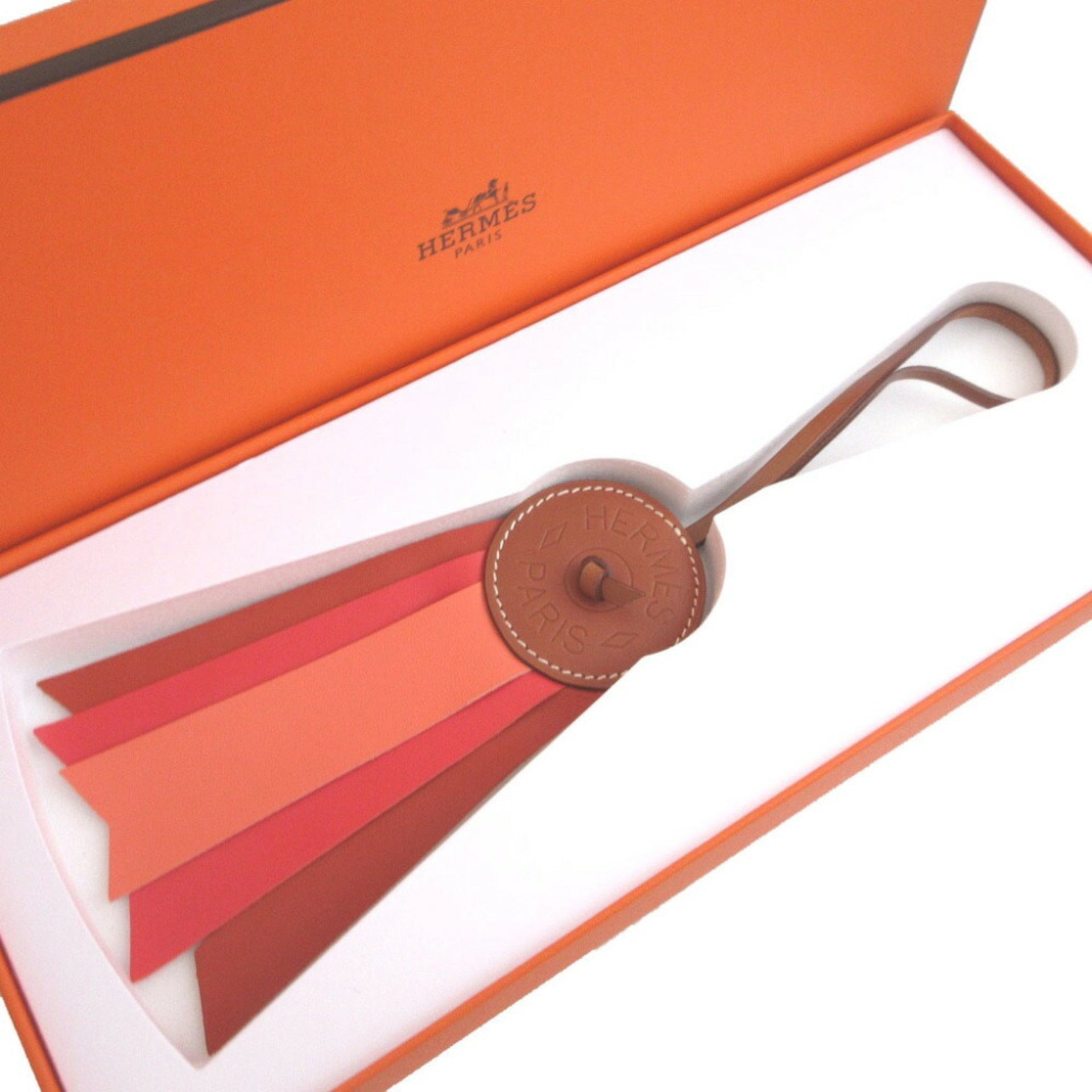 Unused Hermes 064271CA-AH Paddock Flotte Agneau Milo Vache Hunter Capucines Carnelian Charm Keychain 1086HERMES