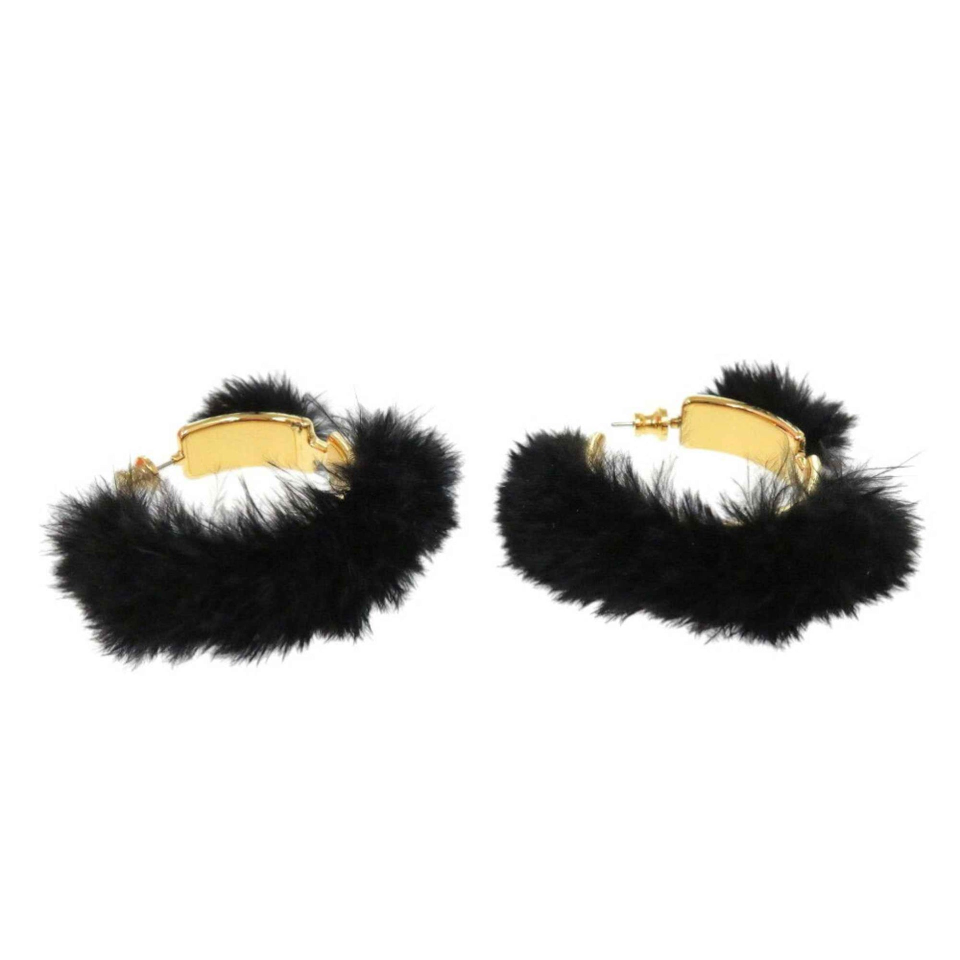 Unused Hermes Olympe/Faubourg Circus H100055F 01 Metal Feather Black Earrings 1055HERMES