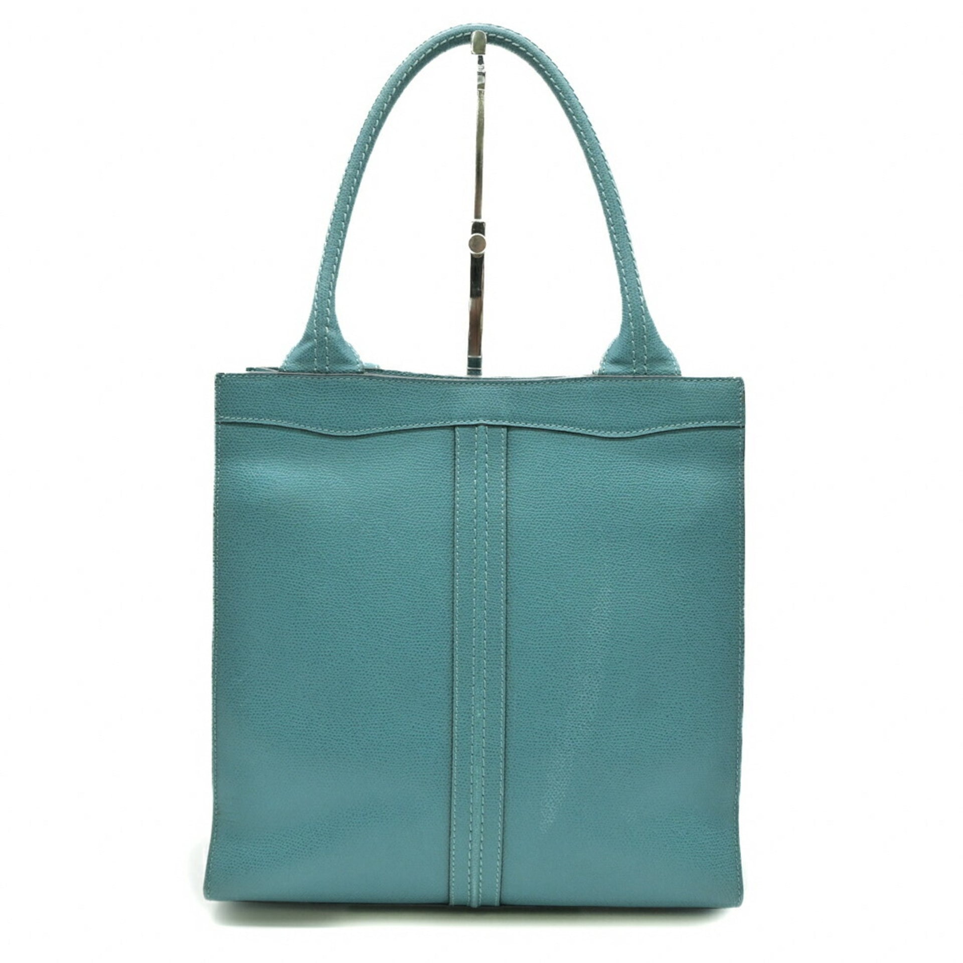 VALEXTRA Punch Small Tote Bag in Calf Leather, Blue