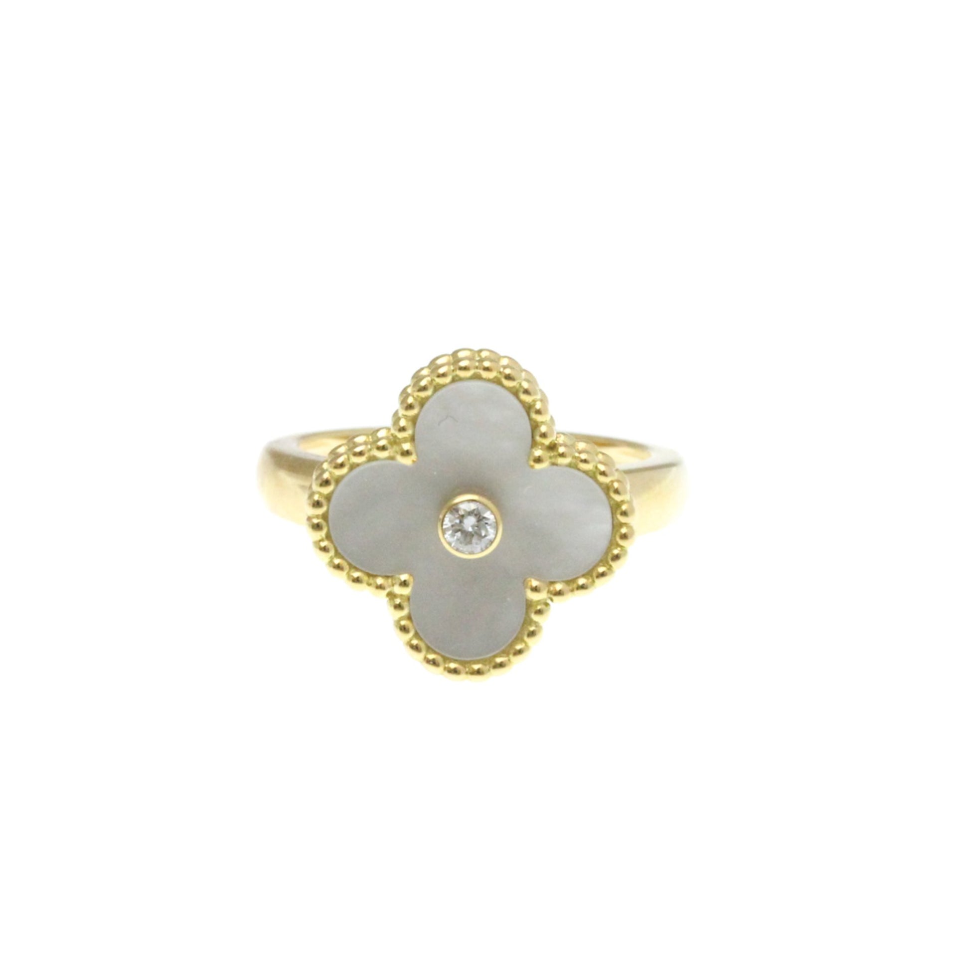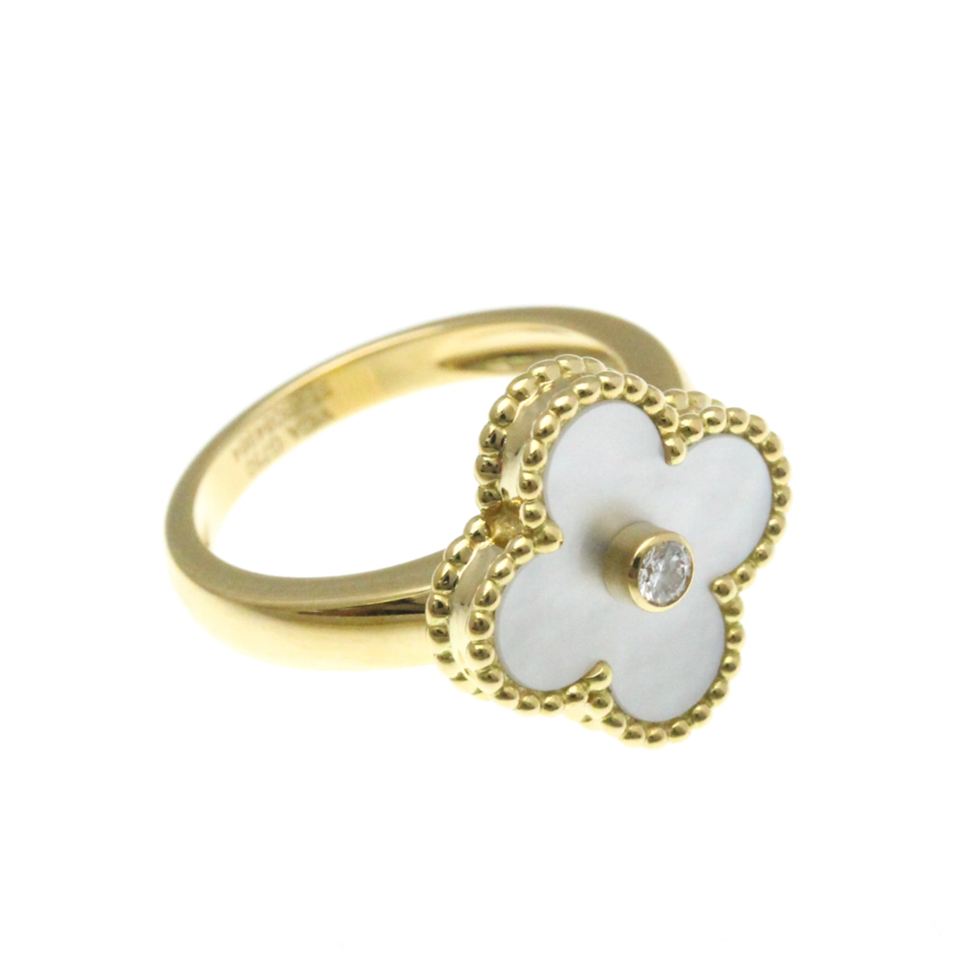 Van Cleef & Arpels Vintage Alhambra Yellow Gold (18K) Fashion Diamond,Mother Of Pearl Band Ring Gold