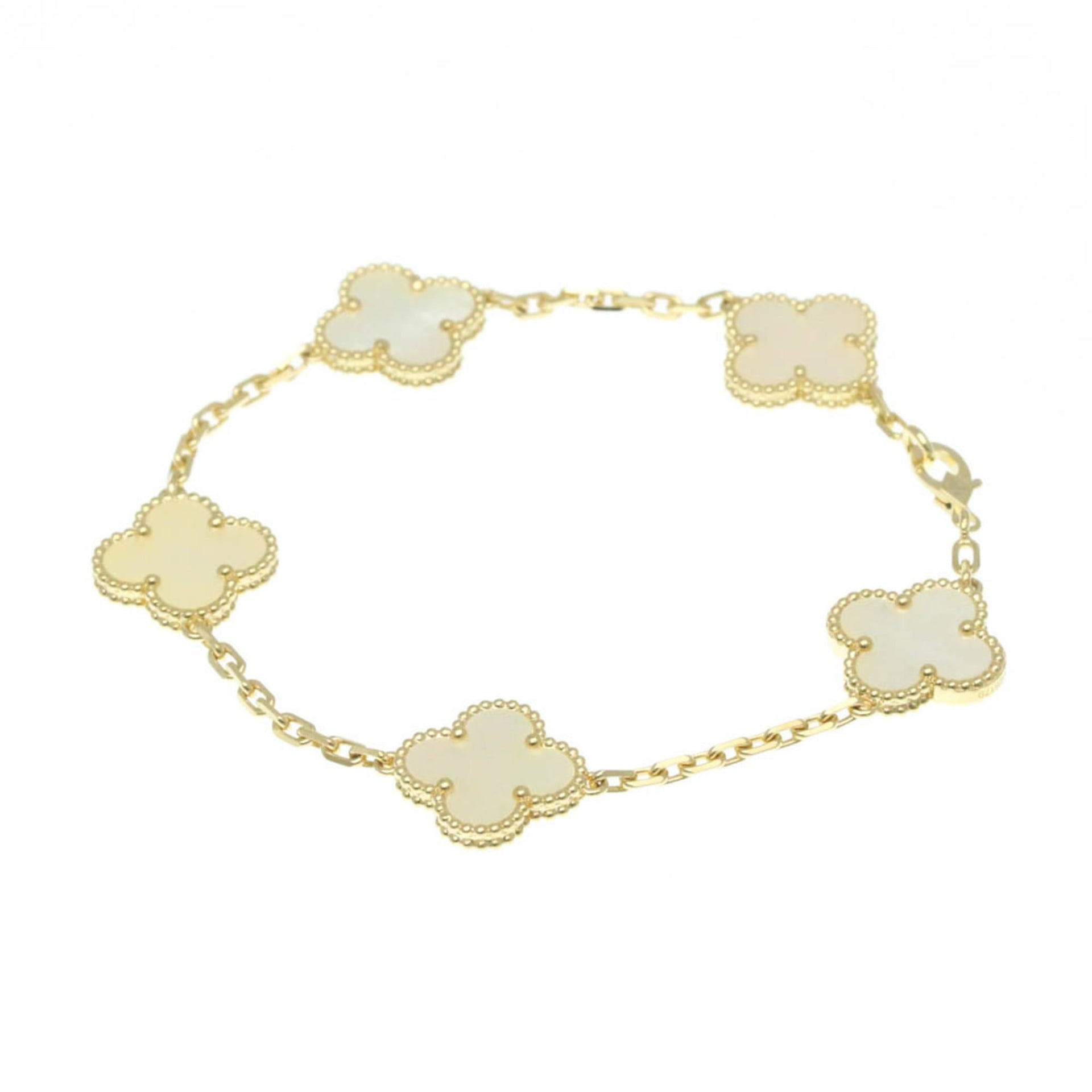 Van Cleef & Arpels Vintage Alhambra Yellow Gold (18K) Mother Of Pearl Charm Bracelet Gold