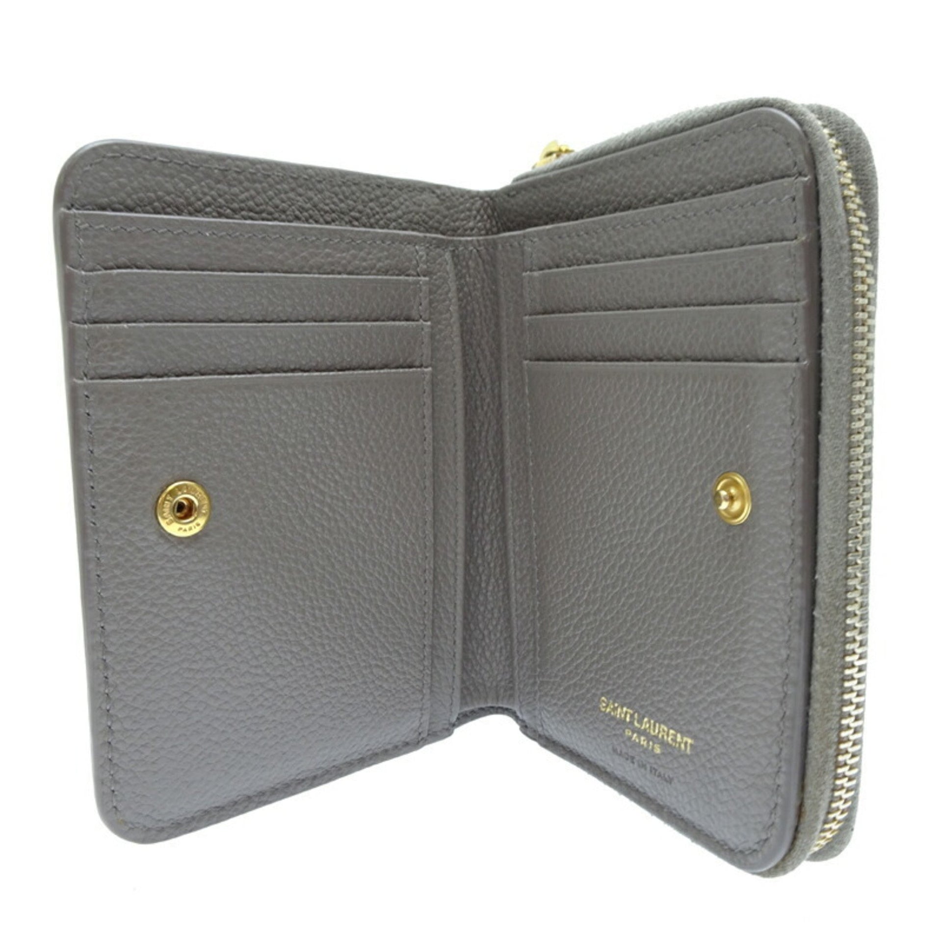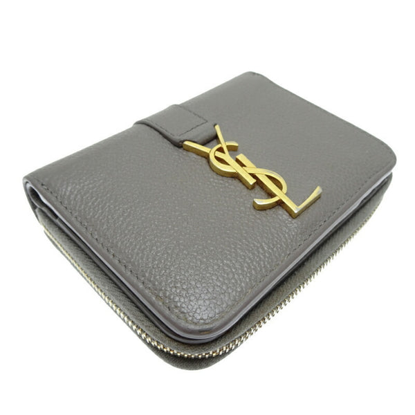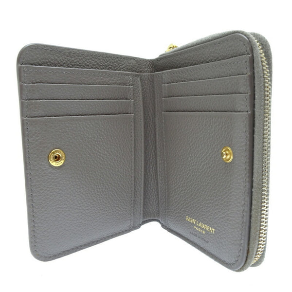 Yves Saint Laurent Compact Wallet Women\'s Bi-fold Leather Grey