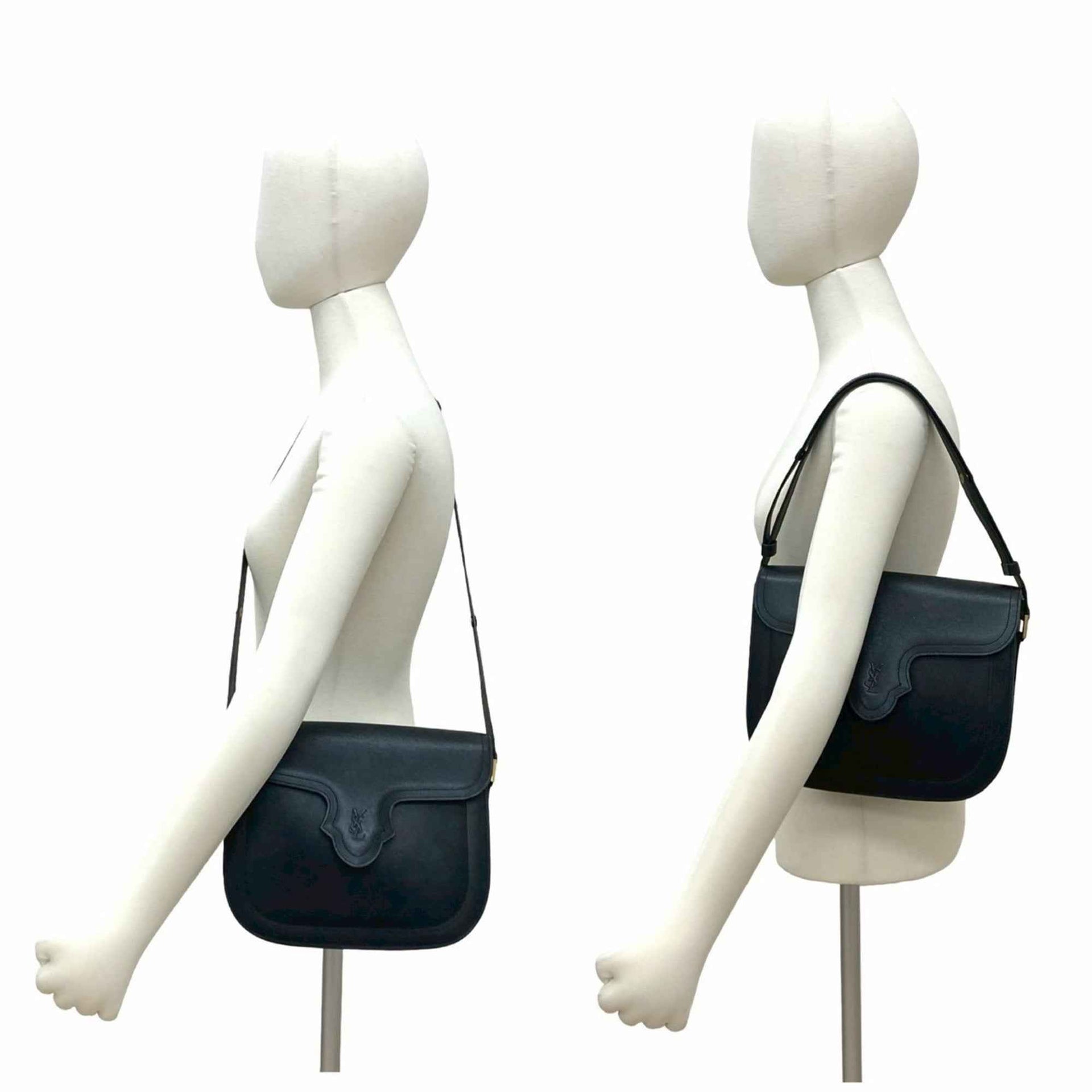 YVES SAINT LAURENT YSL Logo Embossed Leather Semi-Shoulder Bag Black 36773