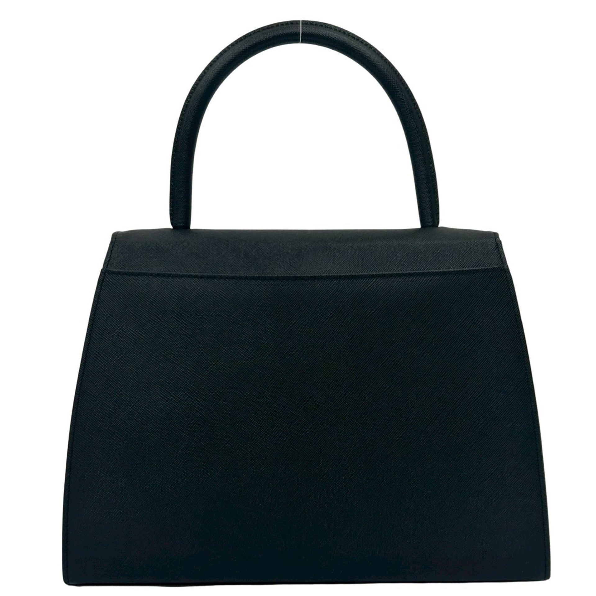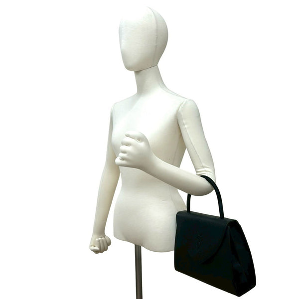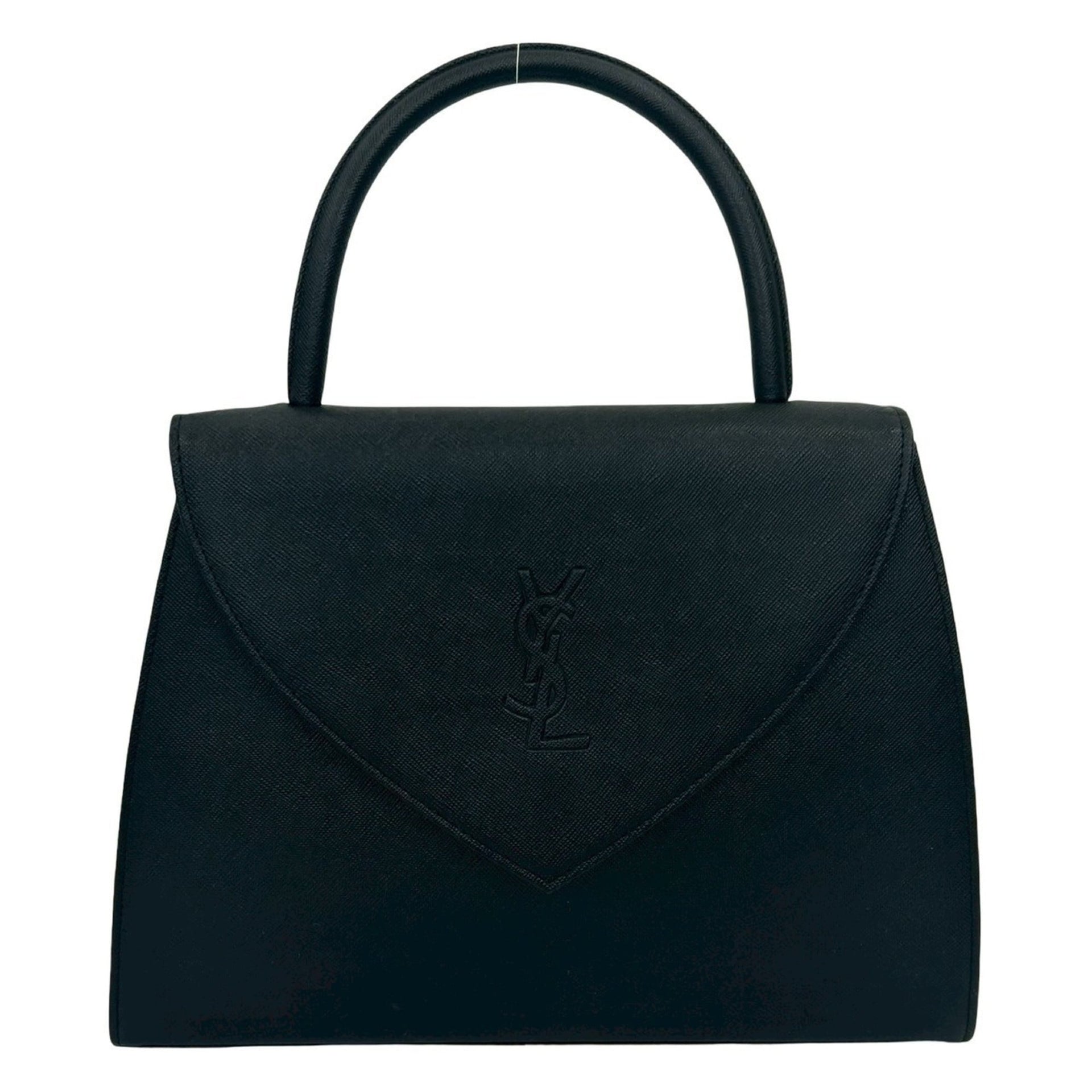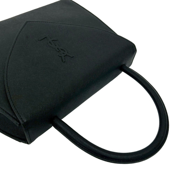 Yves Saint Laurent YSL Logo Leather Handbag Tote Bag Black 04582