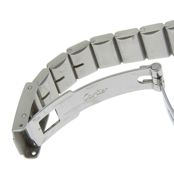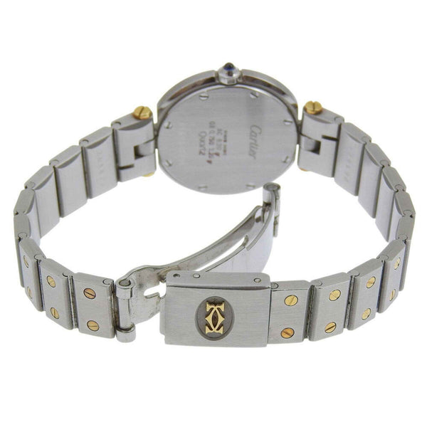 Cartier Santos Round SM Watch, caliber 81, 84038288, stainless steel with yellow gold quartz movement, analog display, white dial, for women.