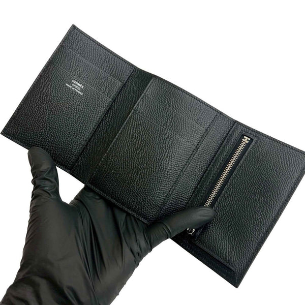 Unused, stored item, B stamped, HERMES Bearn combination, monochrome, Epsom leather, tri-fold wallet, black, 57754
