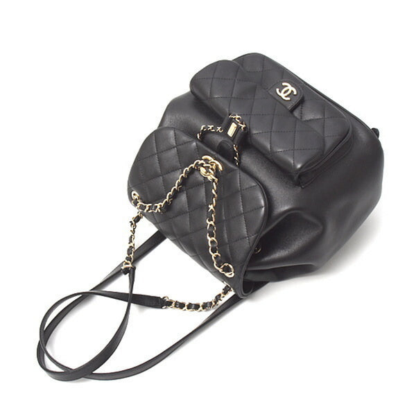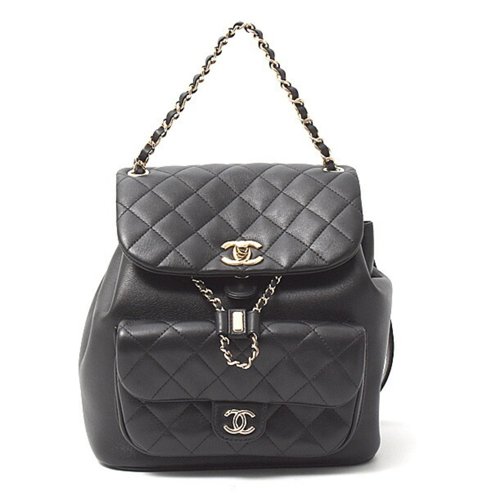 CHANEL Women\'s Matelasse Backpack with Coco Mark, Black Lambskin, AS3618