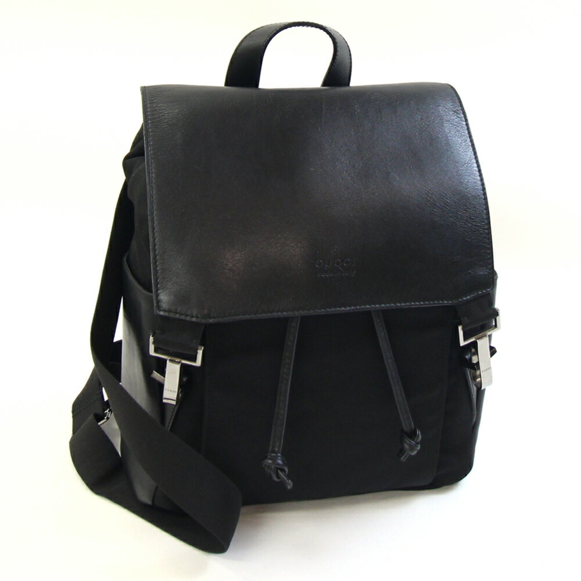 Gucci Backpack 008 0233 Black Nylon Canvas Leather Day Bag Old Women\'s GUCCI