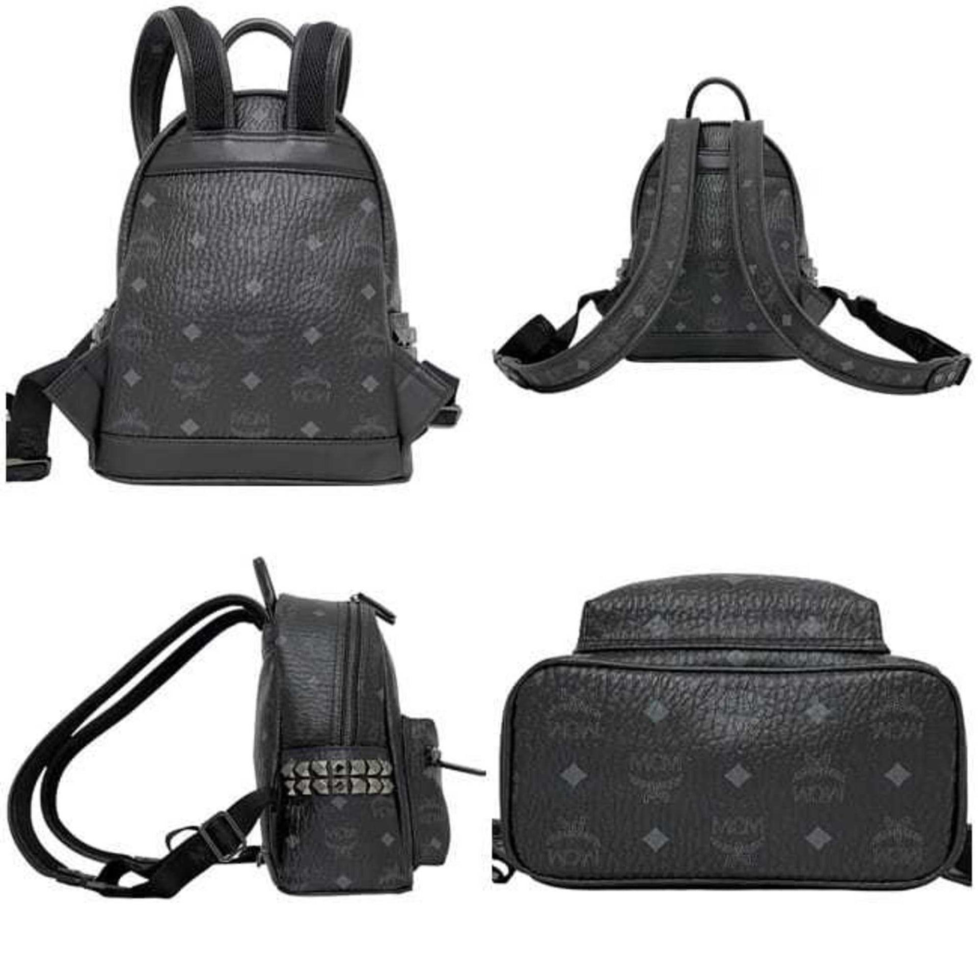 MCM Stark Backpack f-24042 Black Visetos MMK6SVE41BK001 PVC Leather Studs 10351811 Mini for Men and Women